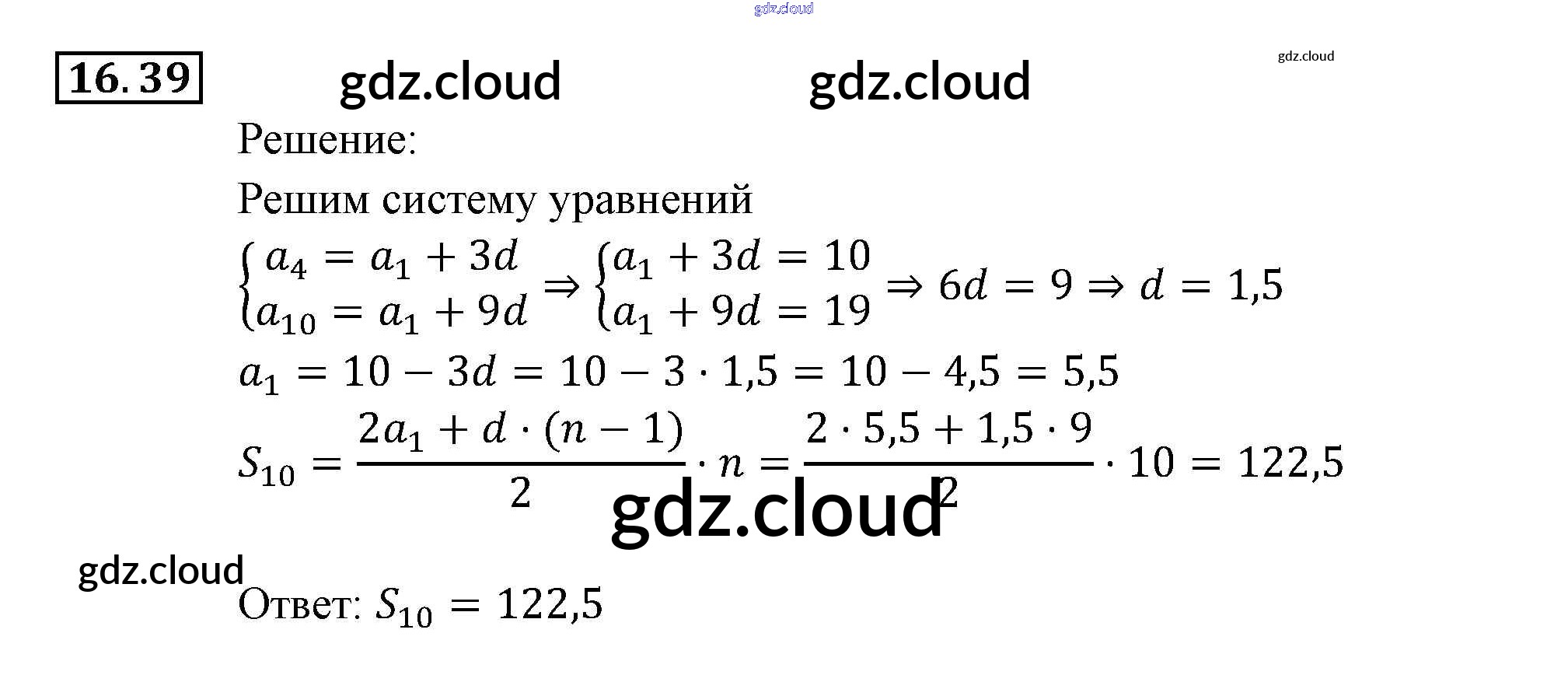 Ответ на задание 16.39 Задачник Алгебра за 9 (девятый) класс Мордкович, Александрова, Мишустина, Тульчинская, Семёнов 2010 Часть 2