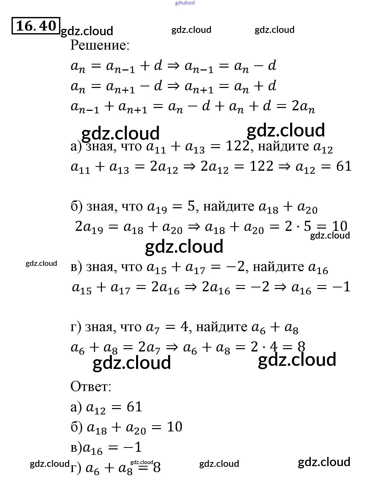 § 16. Арифметическая прогрессия Ответы к Главе 4. Прогрессии по Алгебре 9 класс Задачник Мордкович Часть 2 Мнемозина