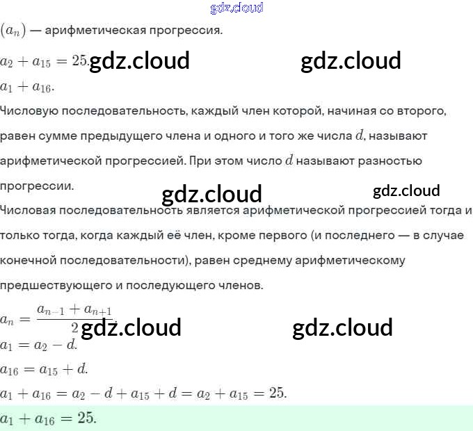 § 16. Арифметическая прогрессия Ответы. Глава 4. Прогрессии по Алгебре 9 класс Задачник Мордкович Часть 2 Мнемозина