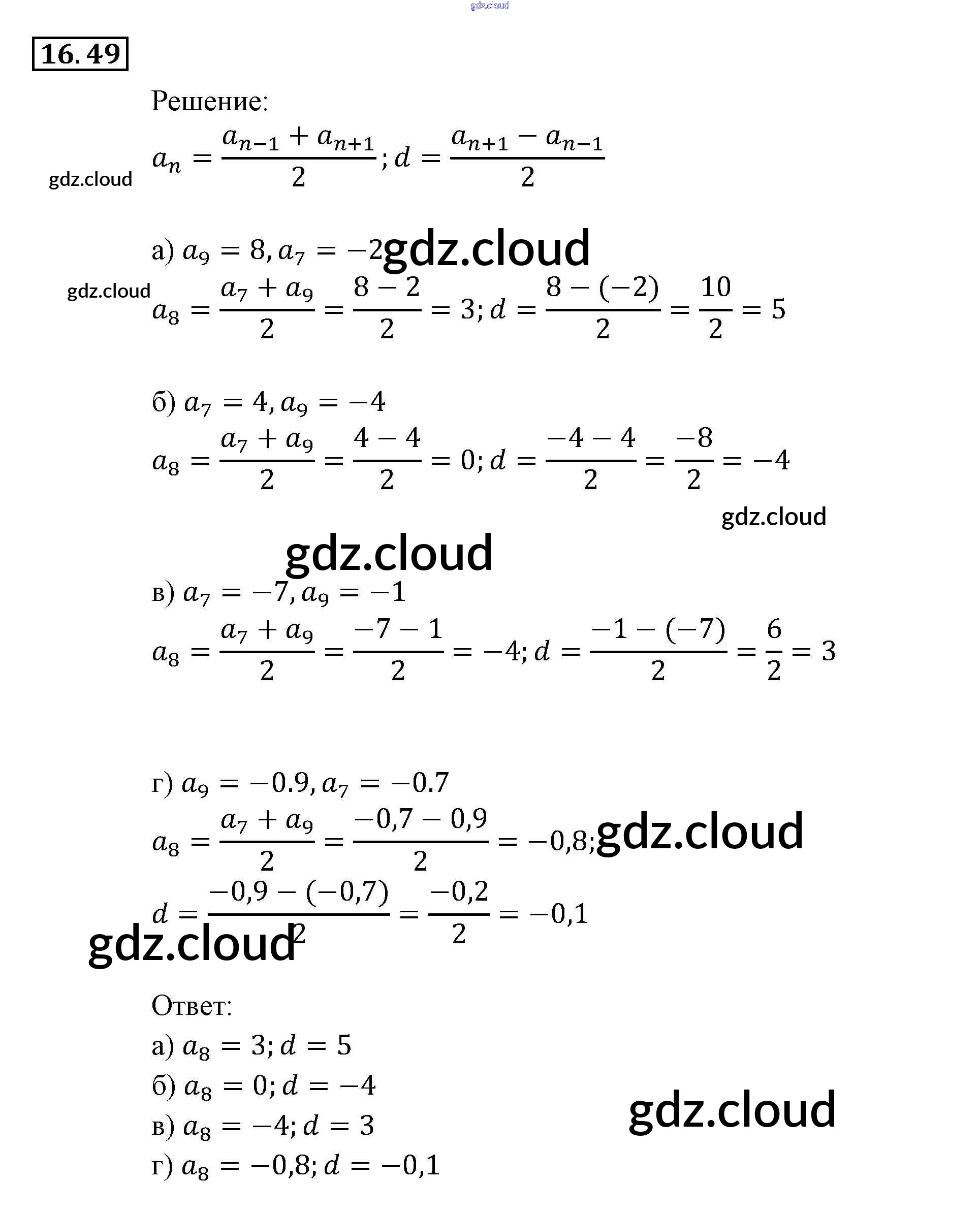 Ответ на задание 16.49 Задачник Алгебра за 9 (девятый) класс Мордкович, Александрова, Мишустина, Тульчинская, Семёнов 2010 Часть 2