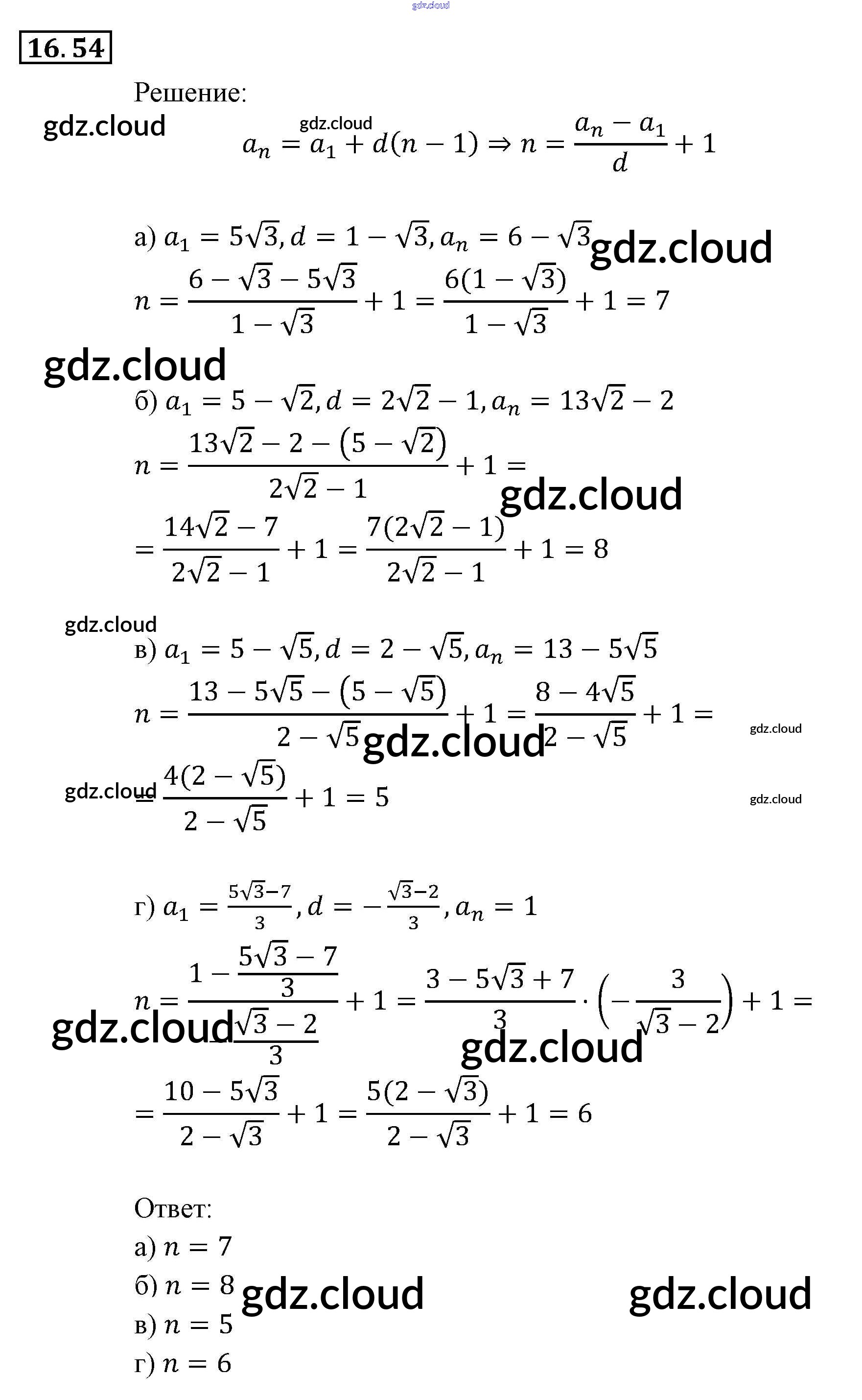 Ответ на задание 54 Задачник Алгебра за 9 (девятый) класс Мордкович, Александрова, Мишустина, Тульчинская, Семёнов 2010 Часть 2