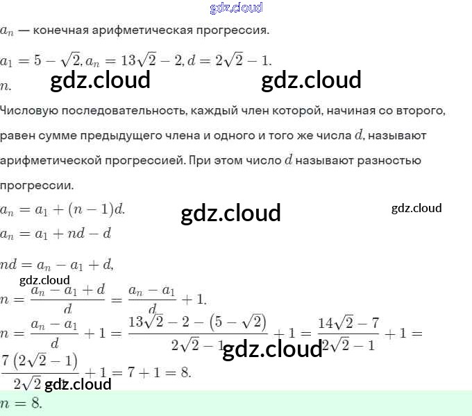 § 16. Арифметическая прогрессия Ответы. Глава 4. Прогрессии по Алгебре 9 класс Задачник Мордкович Часть 2 Мнемозина