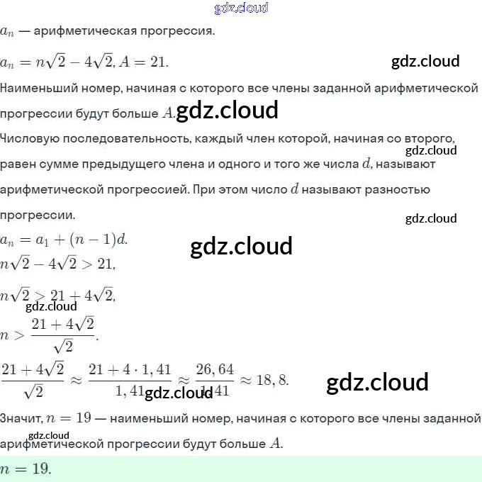 § 16. Арифметическая прогрессия Ответы. Глава 4. Прогрессии по Алгебре 9 класс Задачник Мордкович Часть 2 Мнемозина