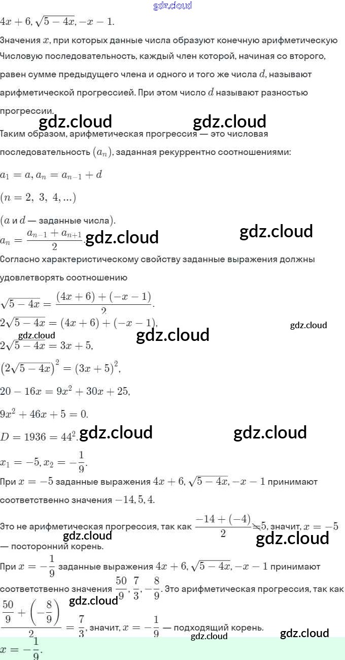 § 16. Арифметическая прогрессия Ответы. Глава 4. Прогрессии по Алгебре 9 класс Задачник Мордкович Часть 2 Мнемозина