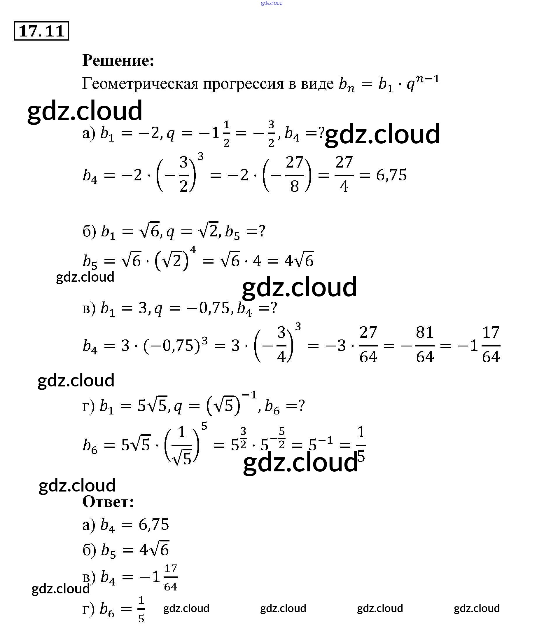 § 17. Геометрическая прогрессия Ответы к Главе 4. Прогрессии по Алгебре 9 класс Задачник Мордкович Часть 2 Мнемозина