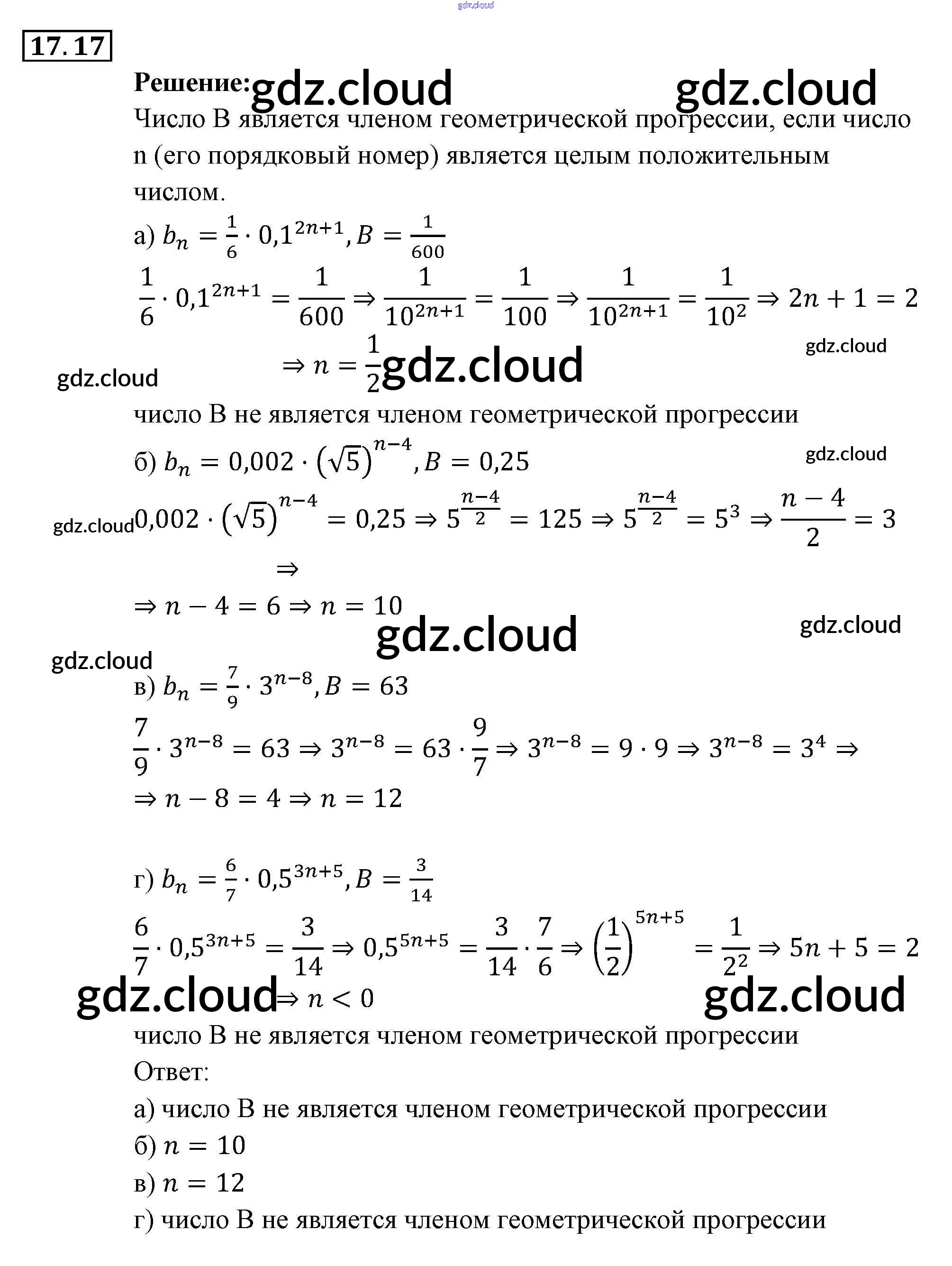 § 17. Геометрическая прогрессия Ответы к Главе 4. Прогрессии по Алгебре 9 класс Задачник Мордкович Часть 2 Мнемозина