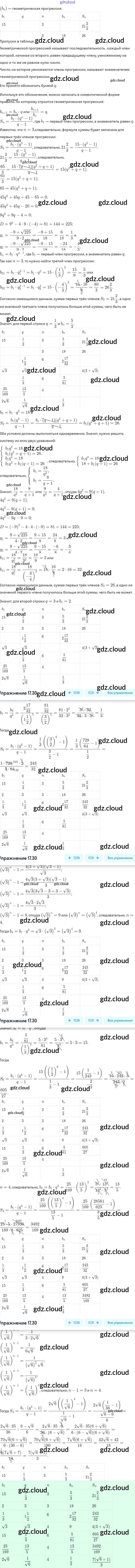 § 17. Геометрическая прогрессия Ответы. Глава 4. Прогрессии по Алгебре 9 класс Задачник Мордкович Часть 2 Мнемозина