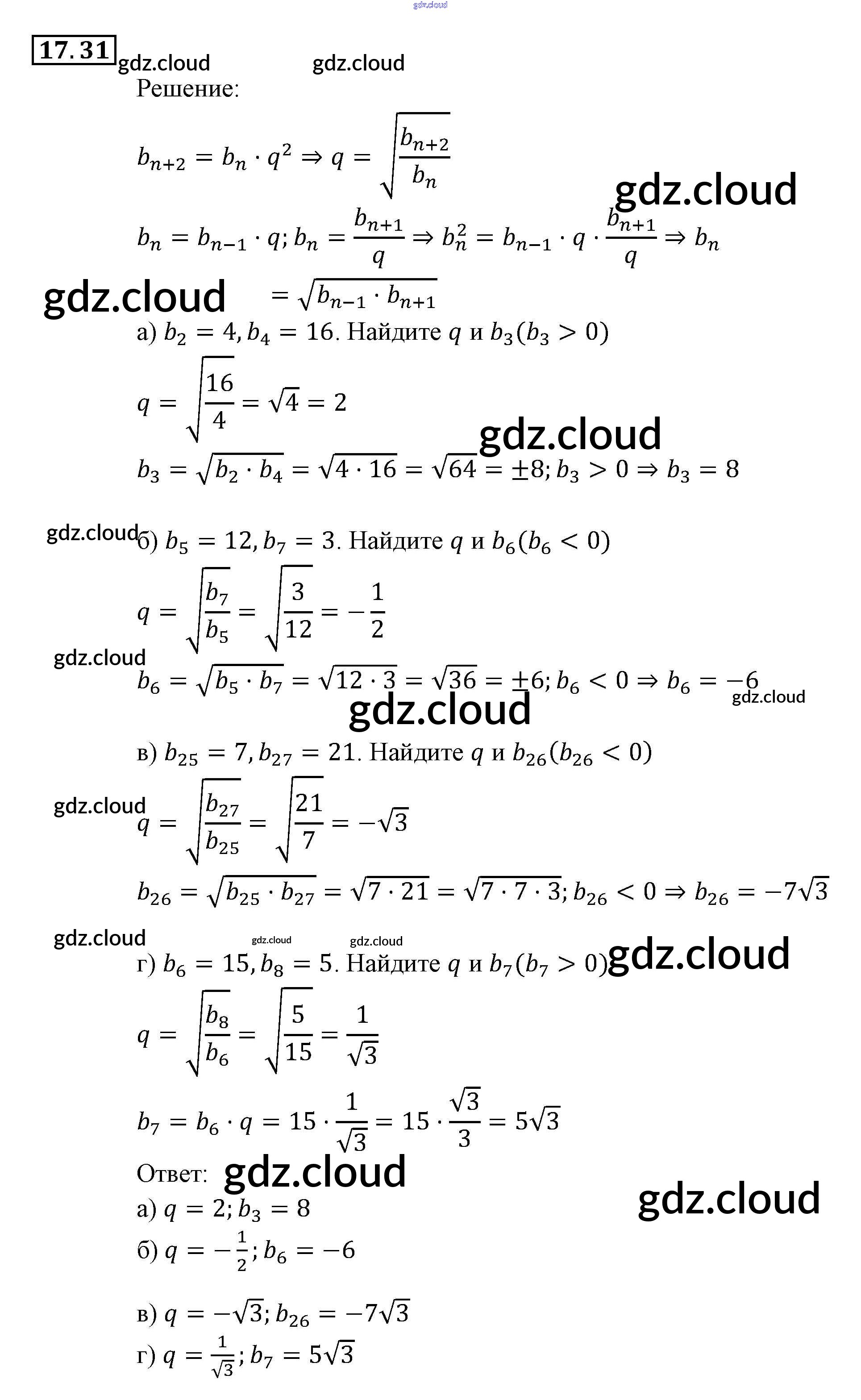 § 17. Геометрическая прогрессия Ответы. Глава 4. Прогрессии по Алгебре 9 класс Задачник Мордкович Часть 2 Мнемозина