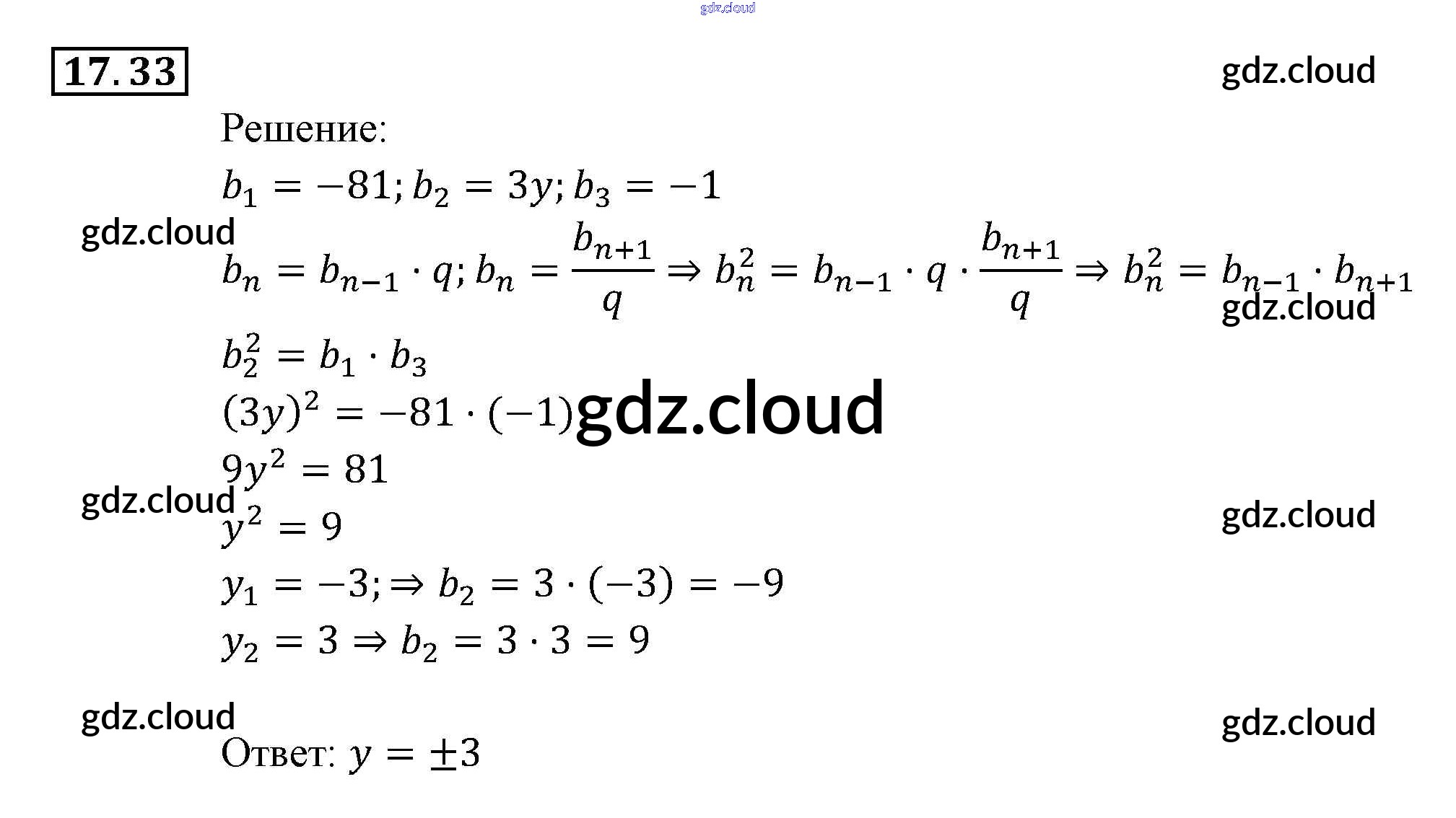Ответ на задание 17.33 Задачник Алгебра за 9 (девятый) класс Мордкович, Александрова, Мишустина, Тульчинская, Семёнов 2010 Часть 2