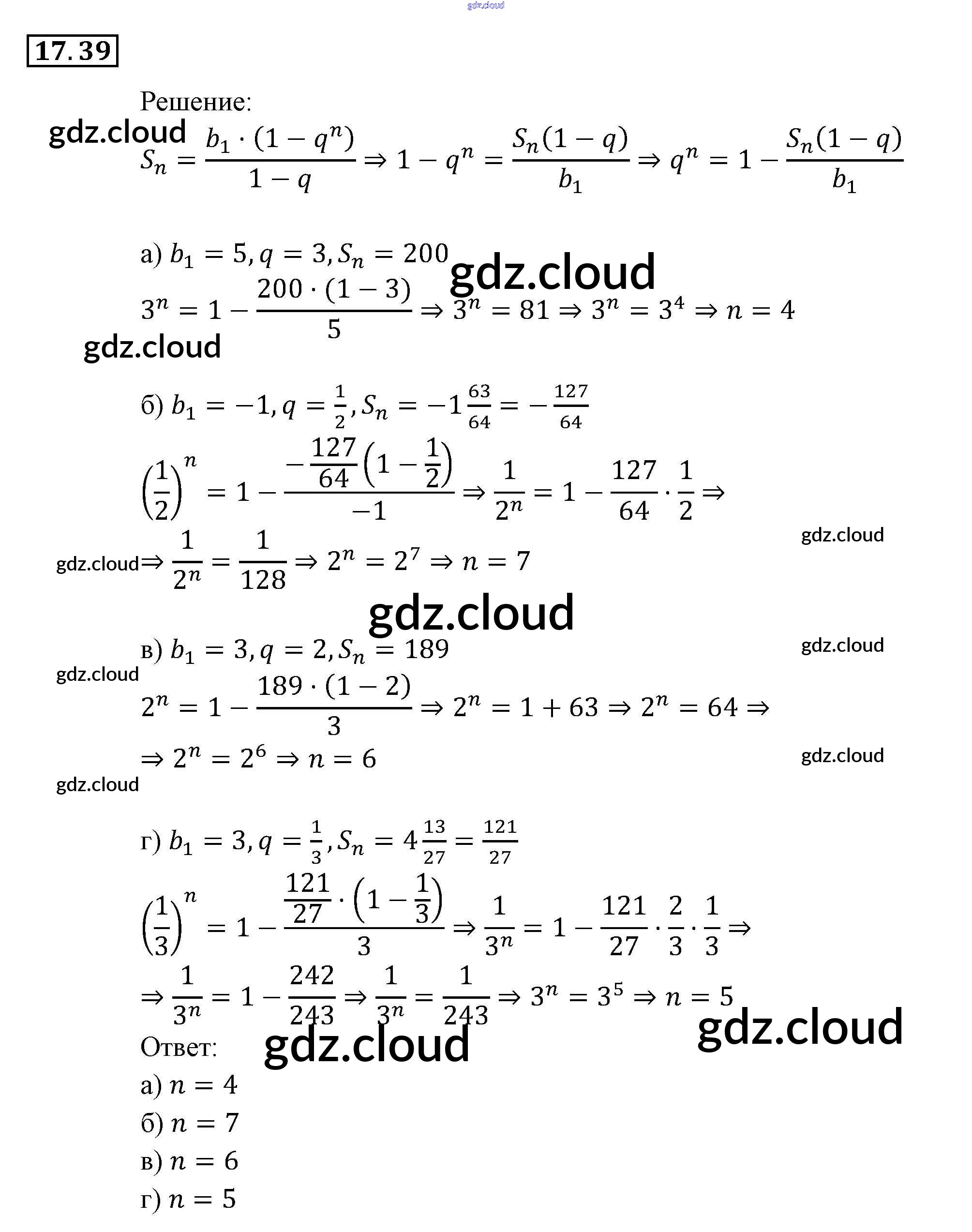 Ответ на задание 17.39 Задачник Алгебра за 9 (девятый) класс Мордкович, Александрова, Мишустина, Тульчинская, Семёнов 2010 Часть 2
