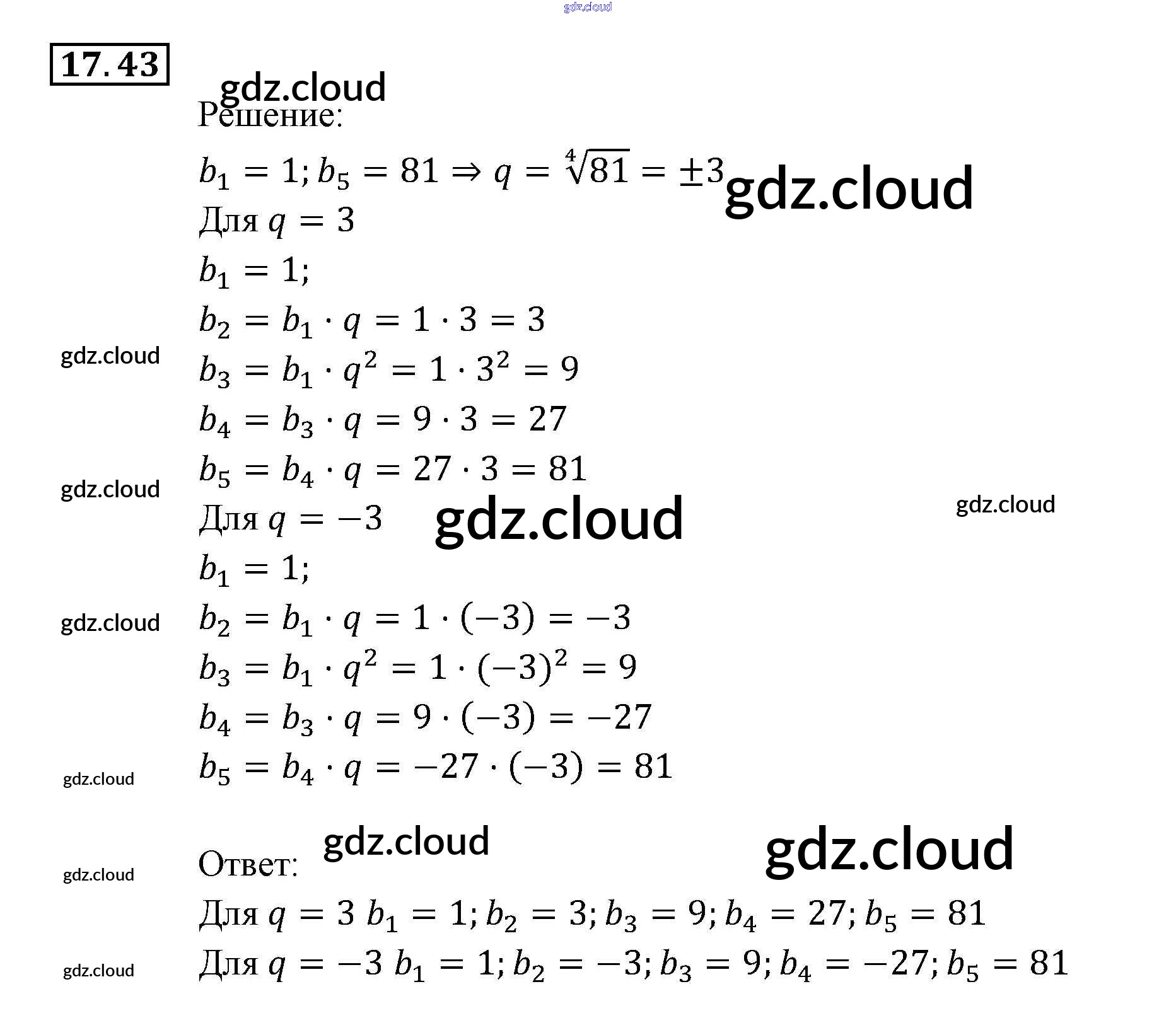 § 17. Геометрическая прогрессия Ответы к Главе 4. Прогрессии по Алгебре 9 класс Задачник Мордкович Часть 2 Мнемозина