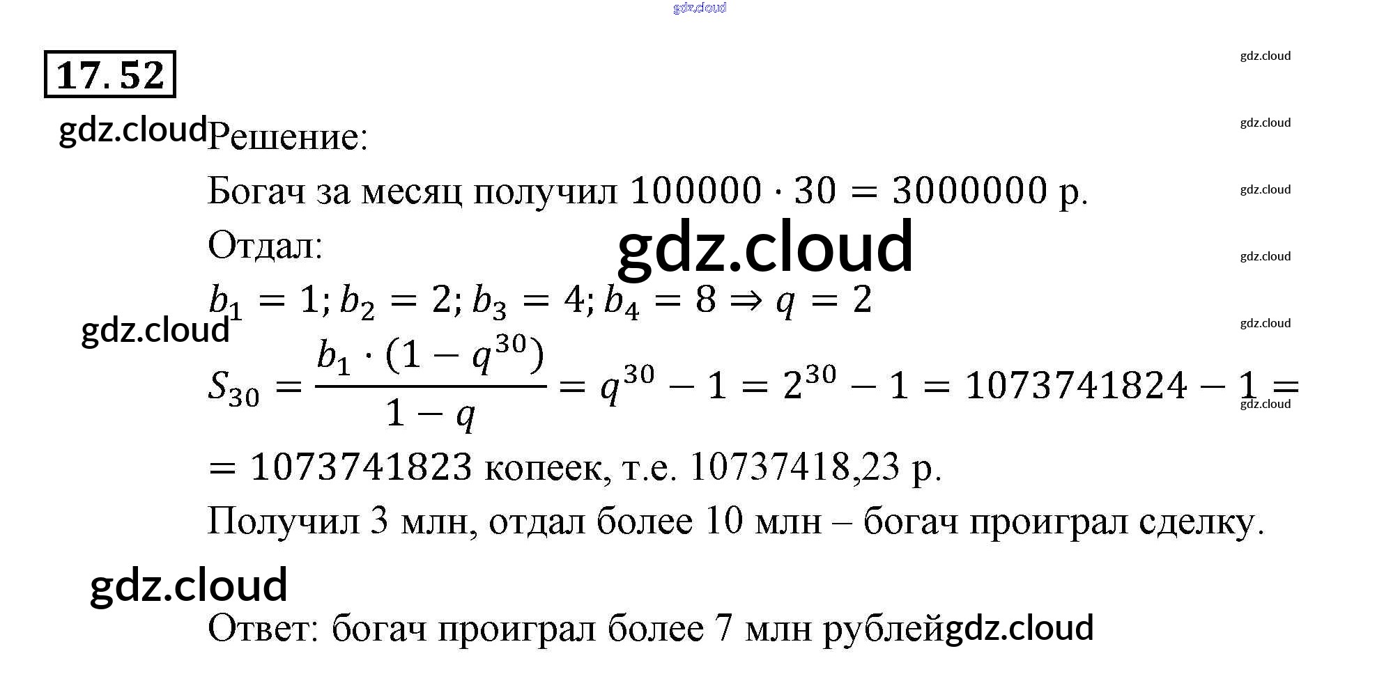 § 17. Геометрическая прогрессия Ответы к Главе 4. Прогрессии по Алгебре 9 класс Задачник Мордкович Часть 2 Мнемозина