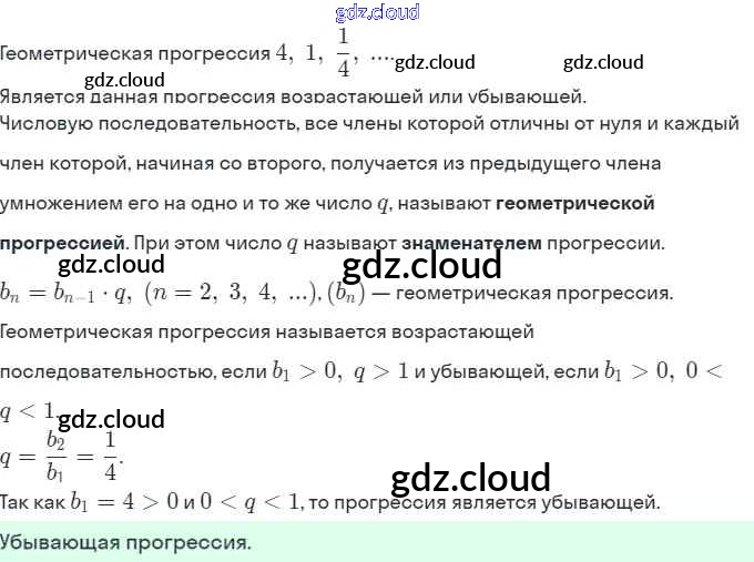 § 17. Геометрическая прогрессия Ответы. Глава 4. Прогрессии по Алгебре 9 класс Задачник Мордкович Часть 2 Мнемозина