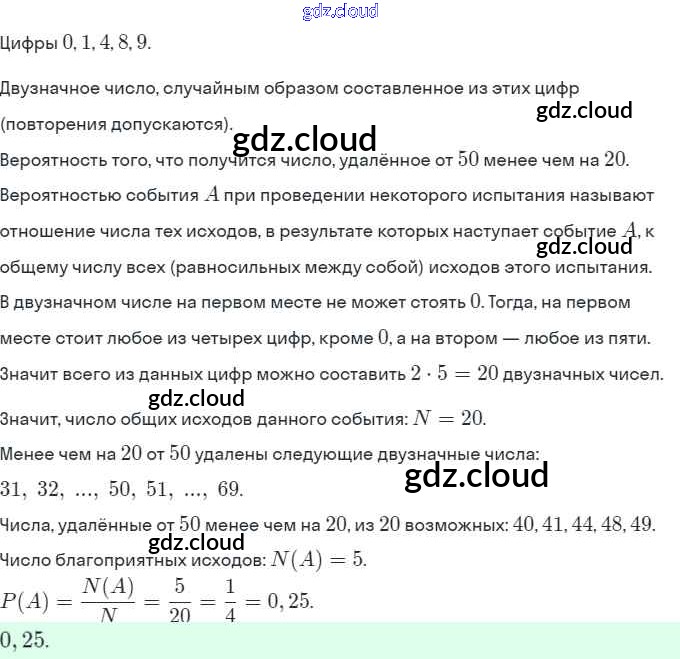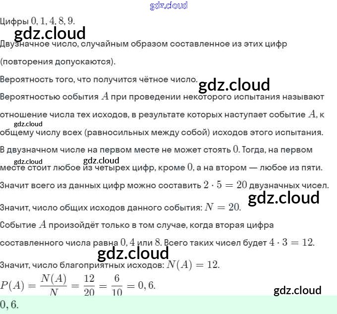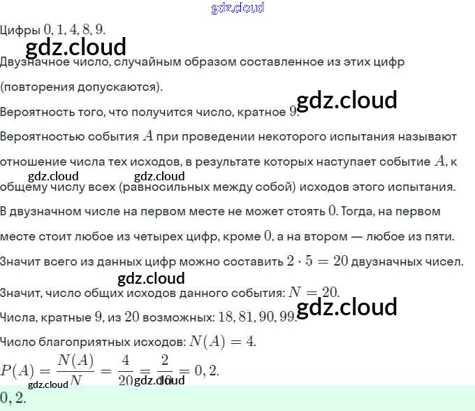 § 20. Простейшие вероятностные задачи Ответы. Глава 5. Элементы комбинаторики, статистики и теории вероятностей по Алгебре 9 класс Задачник Мордкович Часть 2 Мнемозина
