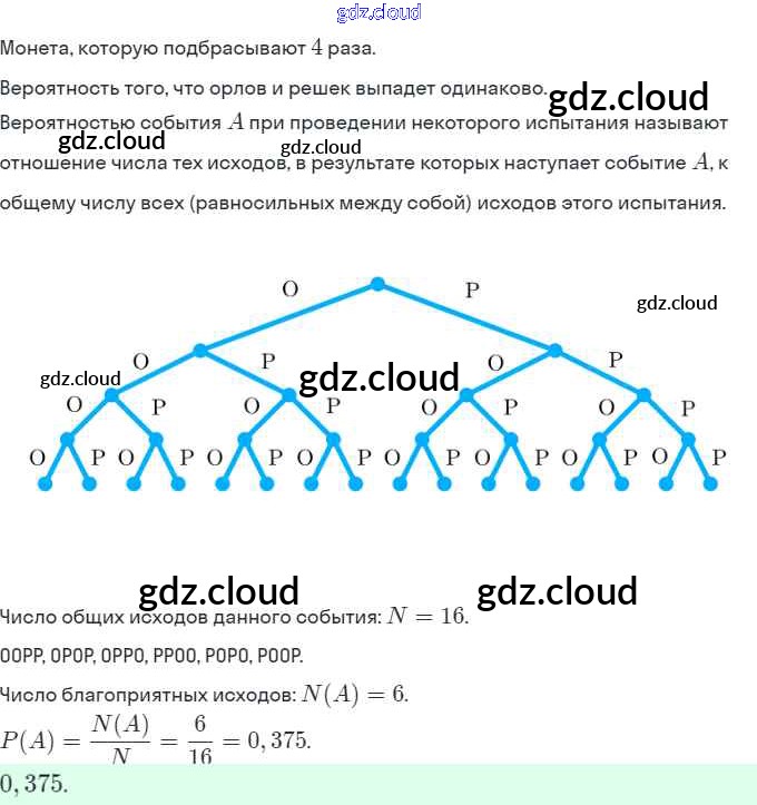 § 20. Простейшие вероятностные задачи Ответы. Глава 5. Элементы комбинаторики, статистики и теории вероятностей по Алгебре 9 класс Задачник Мордкович Часть 2 Мнемозина