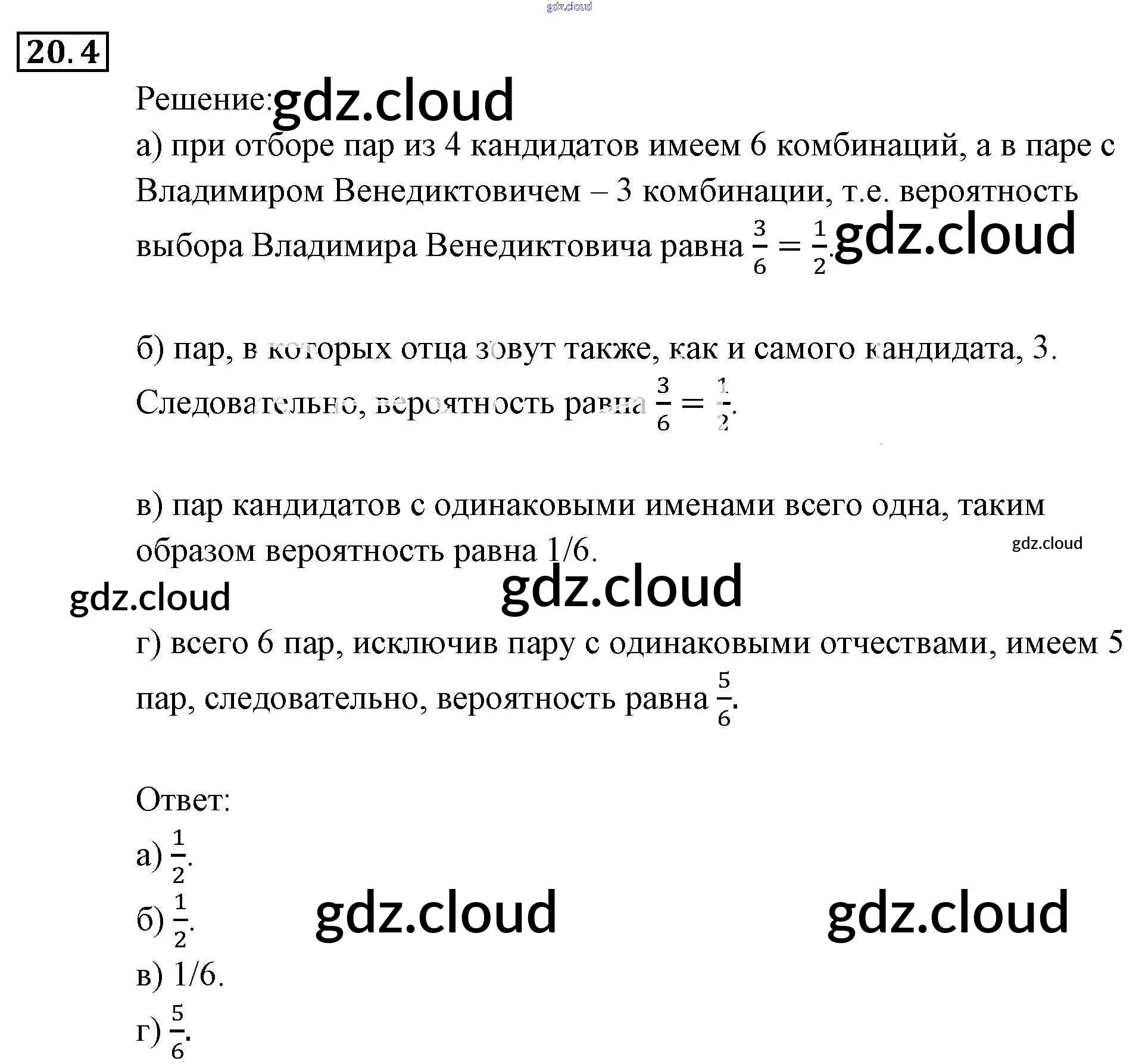 § 20. Простейшие вероятностные задачи Ответы к Главе 5. Элементы комбинаторики, статистики и теории вероятностей по Алгебре 9 класс Задачник Мордкович Часть 2 Мнемозина