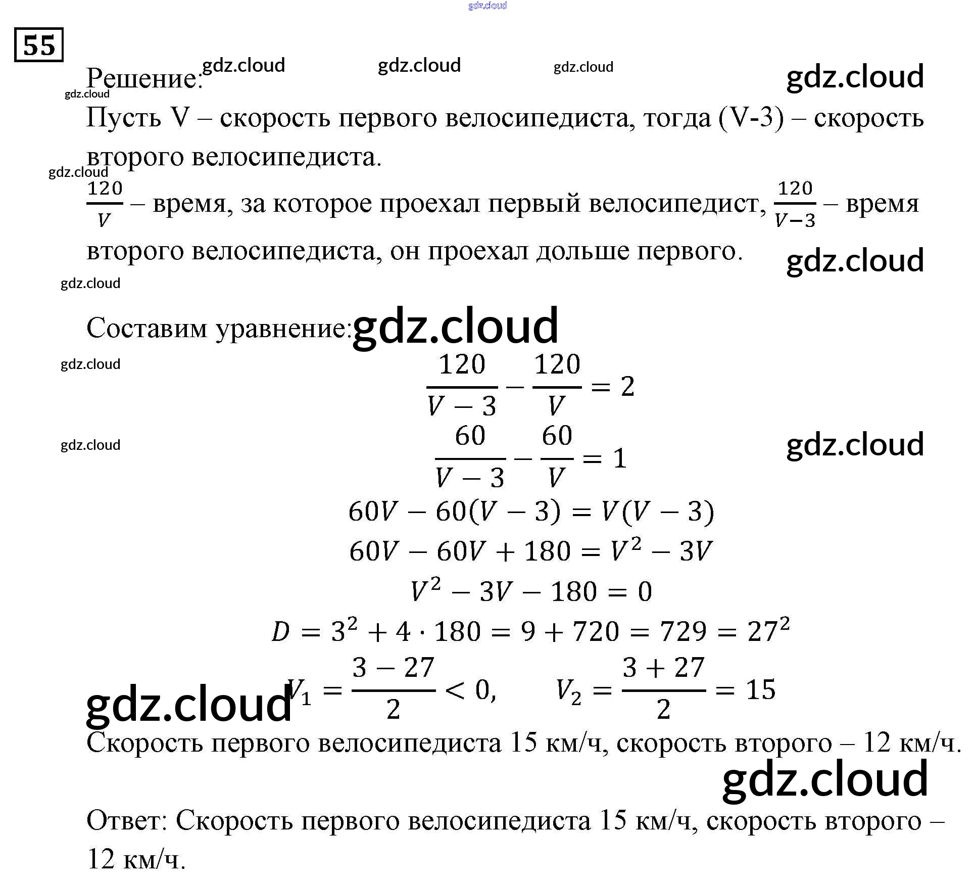 Ответ на задание 55 Задачник Алгебра за 9 (девятый) класс Мордкович, Александрова, Мишустина, Тульчинская, Семёнов 2010 Часть 2
