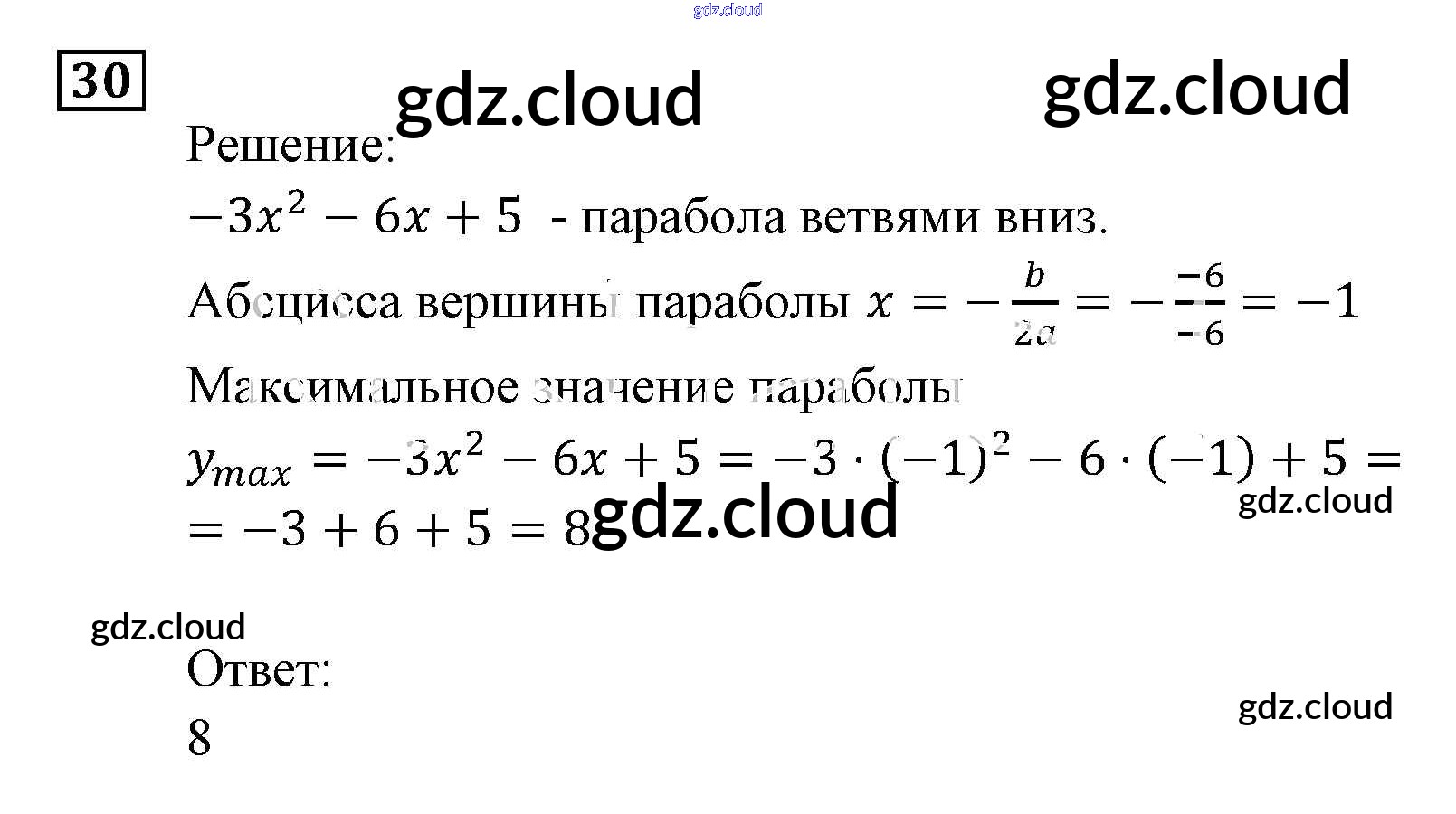 Ответ на задание 30 Задачник Алгебра за 9 (девятый) класс Мордкович, Александрова, Мишустина, Тульчинская, Семёнов 2010 Часть 2