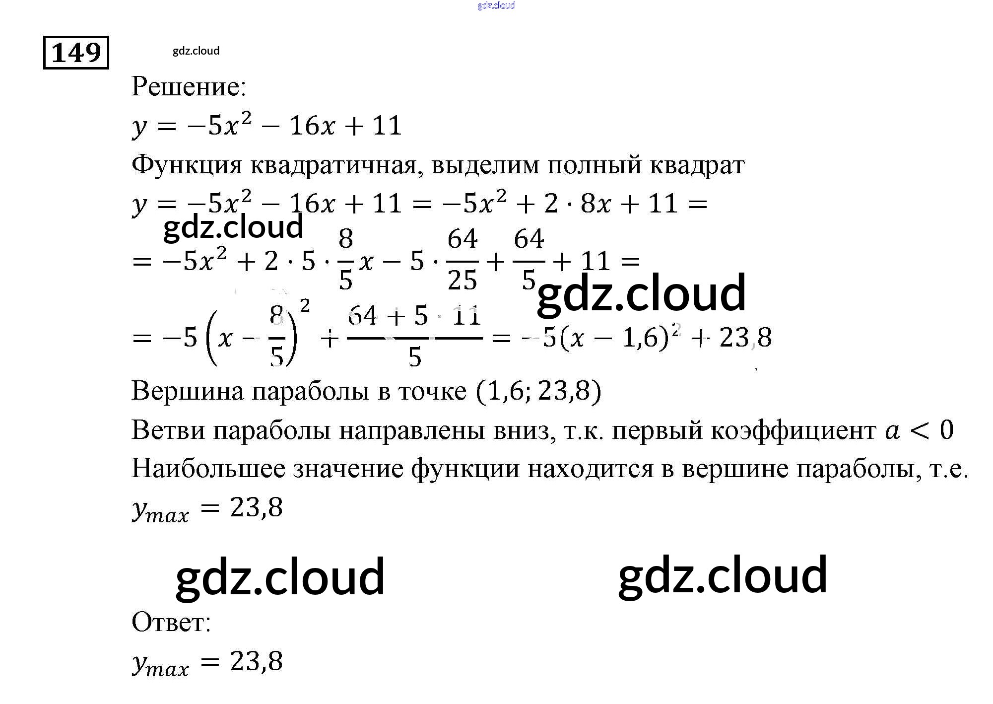 Ответ на задание 149 Задачник Алгебра за 9 (девятый) класс Мордкович, Александрова, Мишустина, Тульчинская, Семёнов 2010 Часть 2