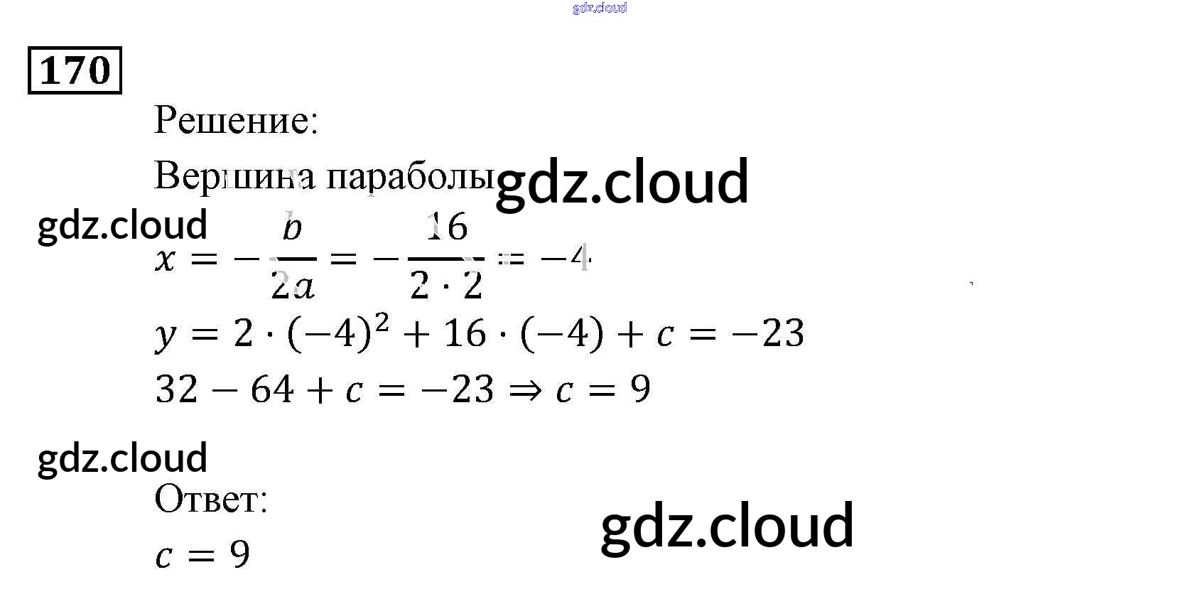 Ответ на задание 170 Задачник Алгебра за 9 (девятый) класс Мордкович, Александрова, Мишустина, Тульчинская, Семёнов 2010 Часть 2