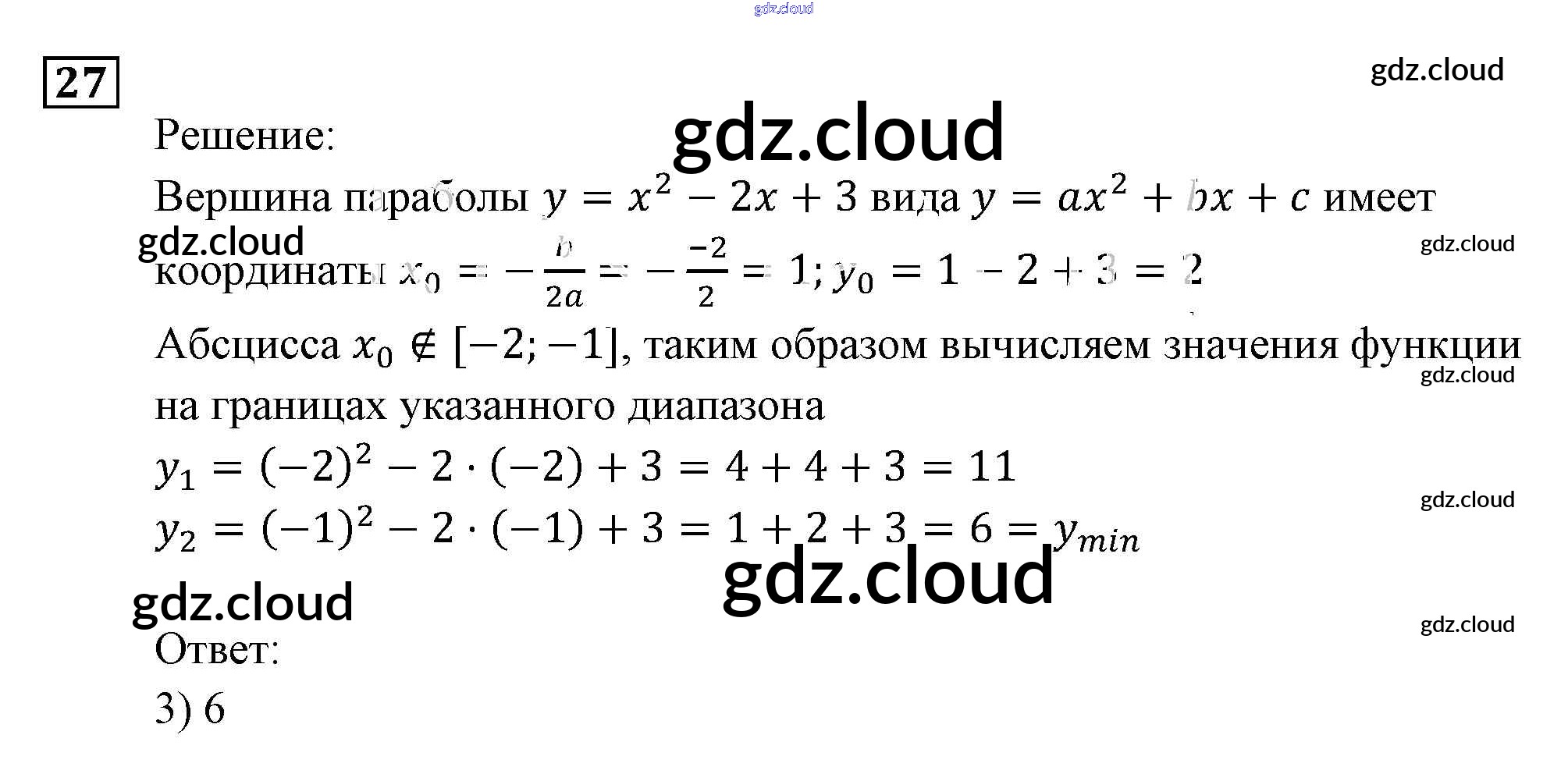 Ответ на задание 27 Задачник Алгебра за 9 (девятый) класс Мордкович, Александрова, Мишустина, Тульчинская, Семёнов 2010 Часть 2