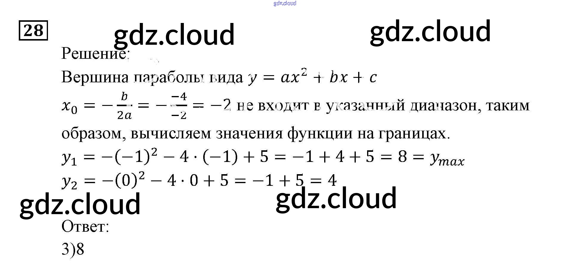 Ответ на задание 28 Задачник Алгебра за 9 (девятый) класс Мордкович, Александрова, Мишустина, Тульчинская, Семёнов 2010 Часть 2