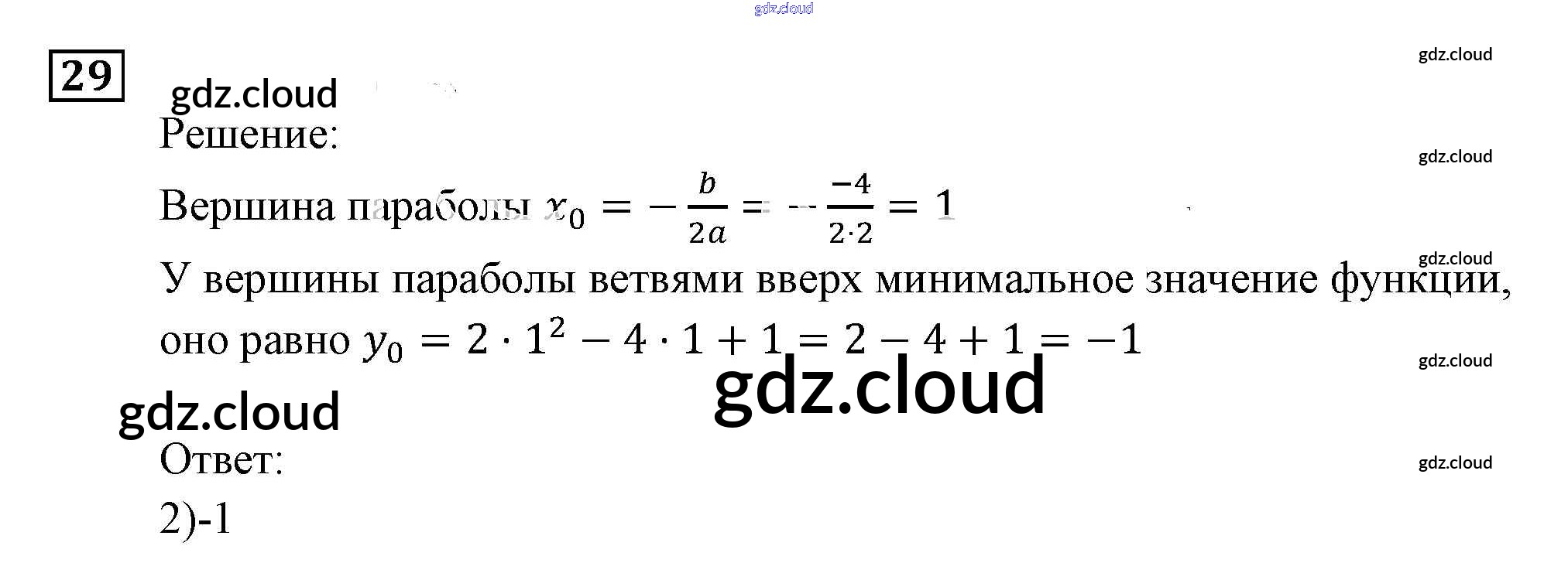 Ответ на задание 29 Задачник Алгебра за 9 (девятый) класс Мордкович, Александрова, Мишустина, Тульчинская, Семёнов 2010 Часть 2