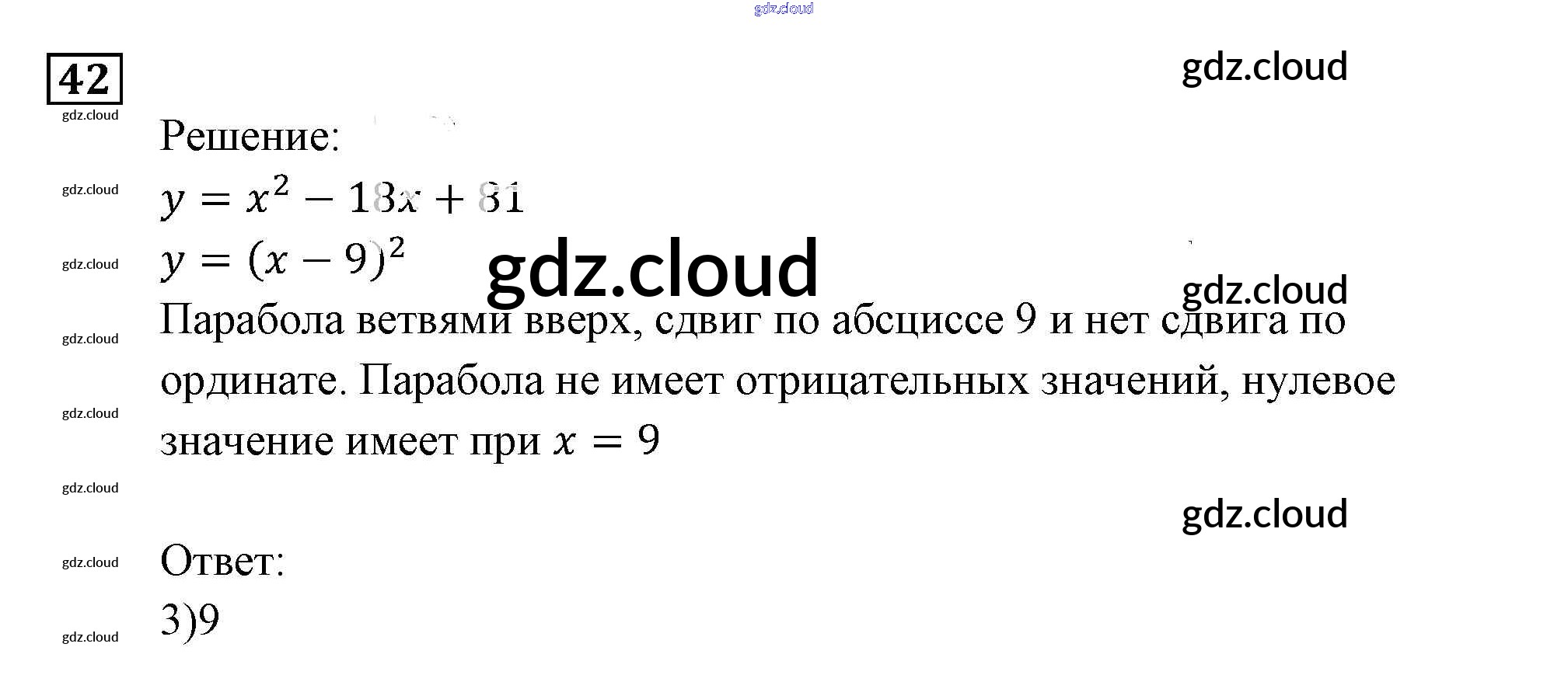 Ответ на задание 42 Задачник Алгебра за 9 (девятый) класс Мордкович, Александрова, Мишустина, Тульчинская, Семёнов 2010 Часть 2