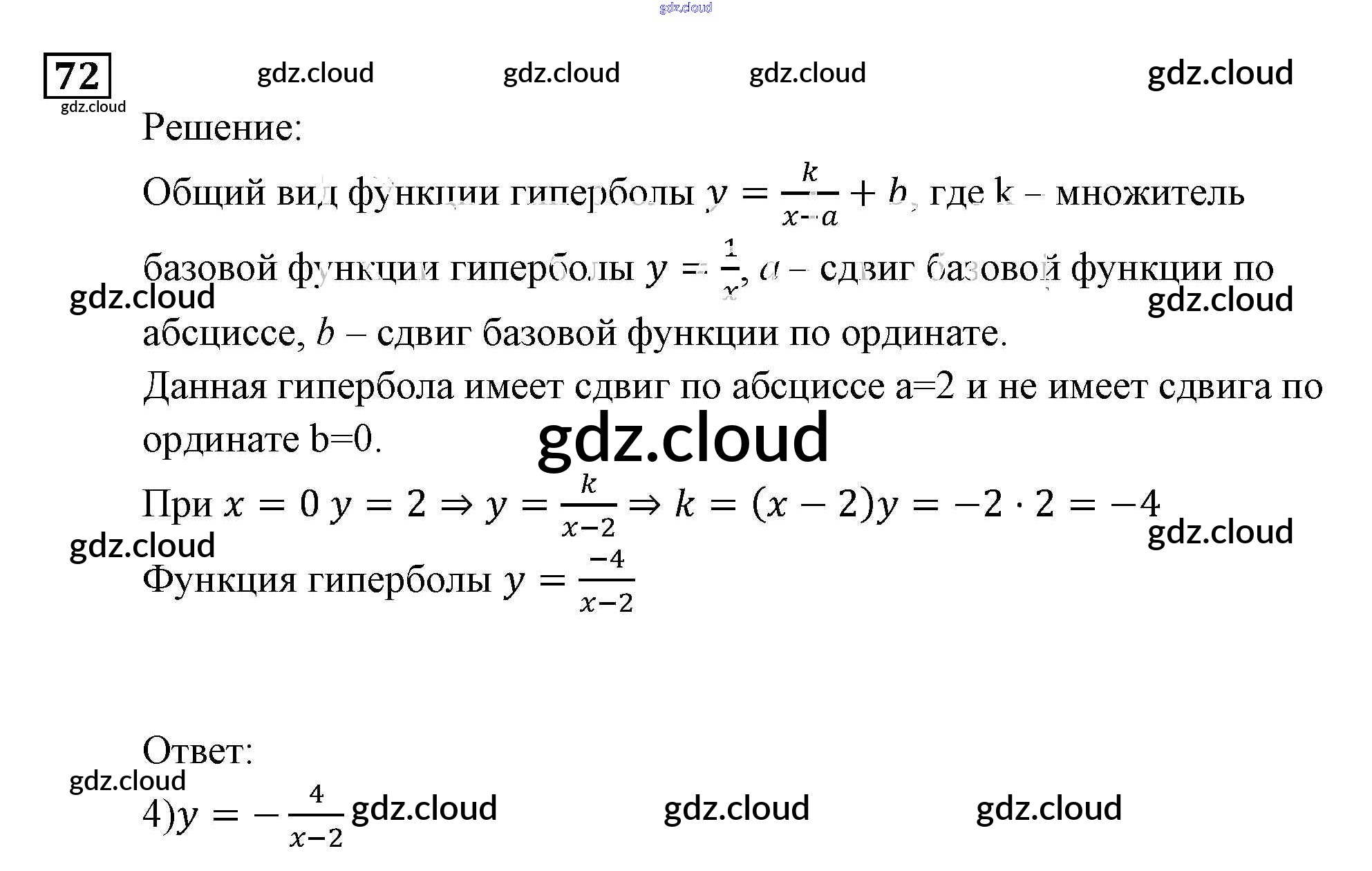 Ответ на задание 72 Задачник Алгебра за 9 (девятый) класс Мордкович, Александрова, Мишустина, Тульчинская, Семёнов 2010 Часть 2