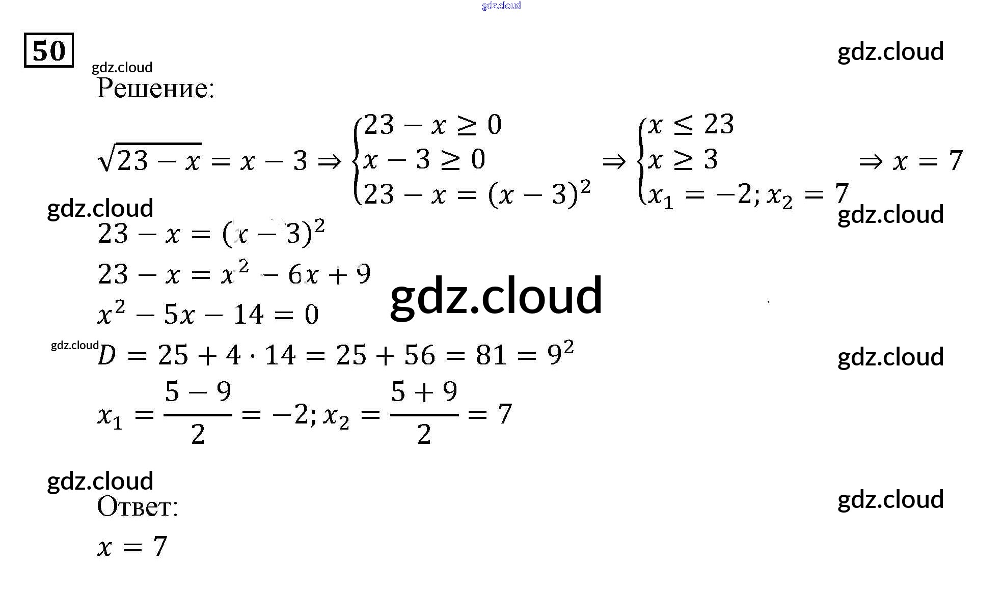 Ответ на задание 50 Задачник Алгебра за 9 (девятый) класс Мордкович, Александрова, Мишустина, Тульчинская, Семёнов 2010 Часть 2