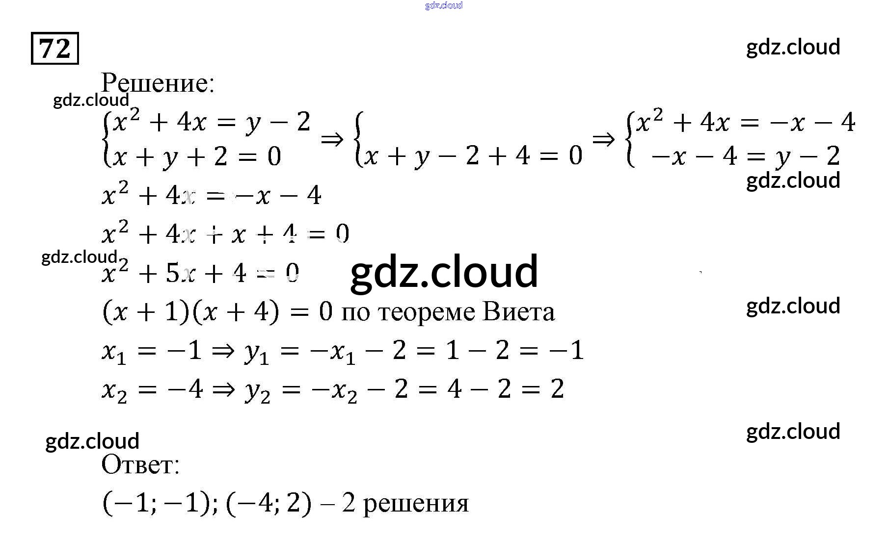 Ответ на задание 72 Задачник Алгебра за 9 (девятый) класс Мордкович, Александрова, Мишустина, Тульчинская, Семёнов 2010 Часть 2