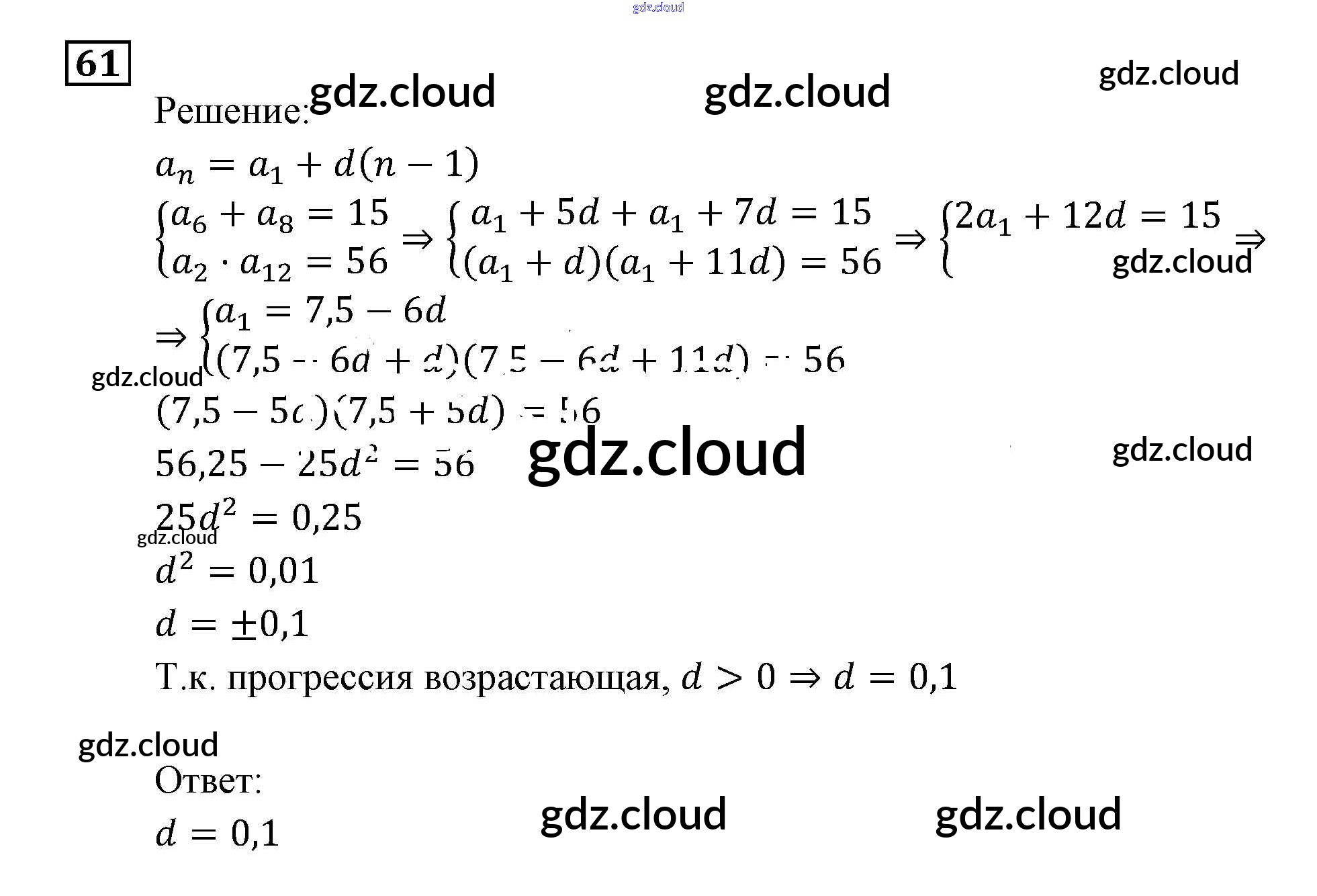 Ответ на задание 61 Задачник Алгебра за 9 (девятый) класс Мордкович, Александрова, Мишустина, Тульчинская, Семёнов 2010 Часть 2