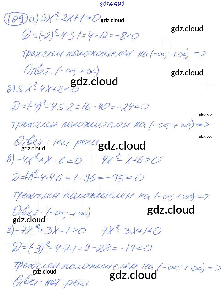 Ответ на задание 109 Учебник Алгебра за 9 (девятый) класс Никольский, Потапов, Решетников, Шевкин МГУ - школе 2014