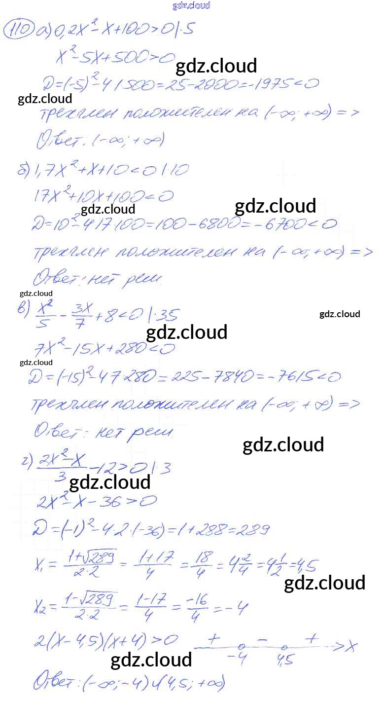 Ответ на задание 110 Учебник Алгебра за 9 (девятый) класс Никольский, Потапов, Решетников, Шевкин МГУ - школе 2014