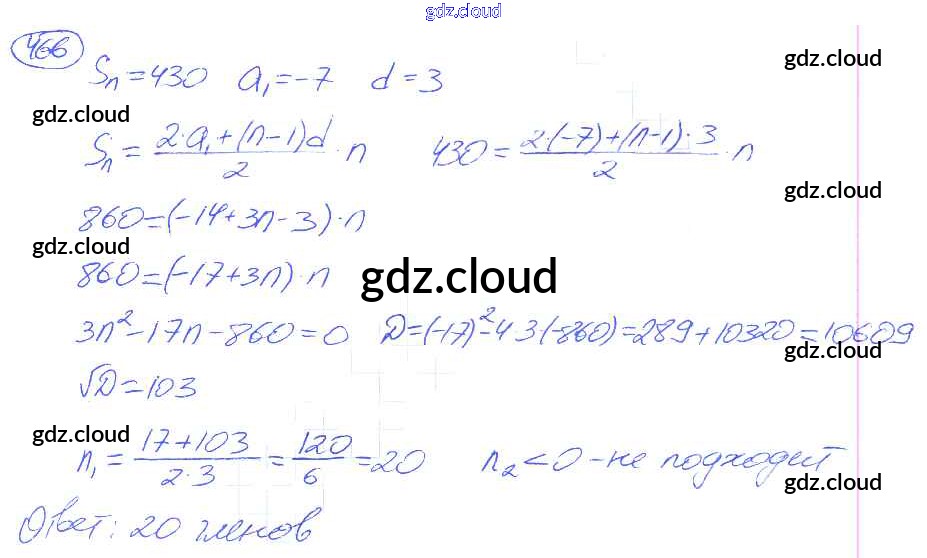 Ответ на задание 466 Учебник Алгебра за 9 (девятый) класс Никольский, Потапов, Решетников, Шевкин МГУ - школе 2014