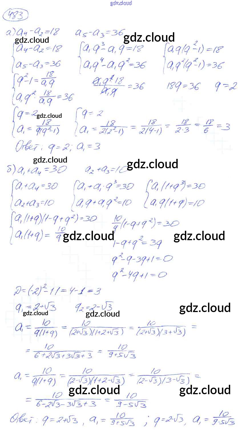 Ответ на задание 483 Учебник Алгебра за 9 (девятый) класс Никольский, Потапов, Решетников, Шевкин МГУ - школе 2014