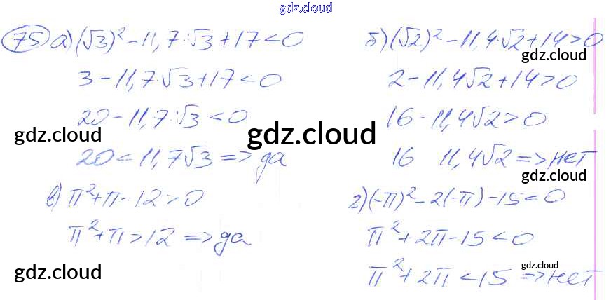 Ответ на задание 75 Учебник Алгебра за 9 (девятый) класс Никольский, Потапов, Решетников, Шевкин МГУ - школе 2014 ФГОС онлайн и без номера телефона.
