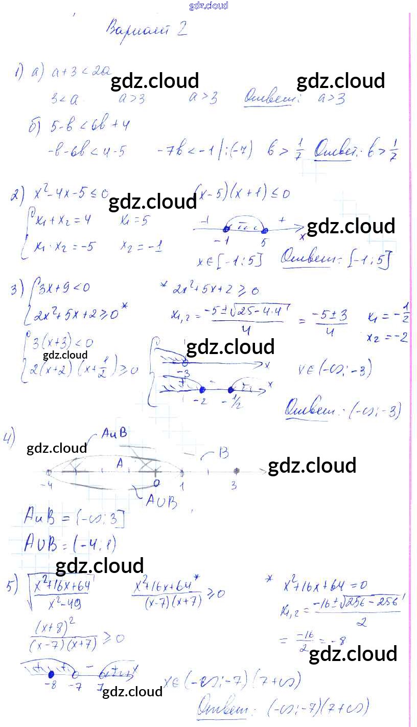 Ответ на задание Вариант 2 Контрольные и самостоятельные работы Алгебра за 9 (девятый) класс Попов УМК 2011