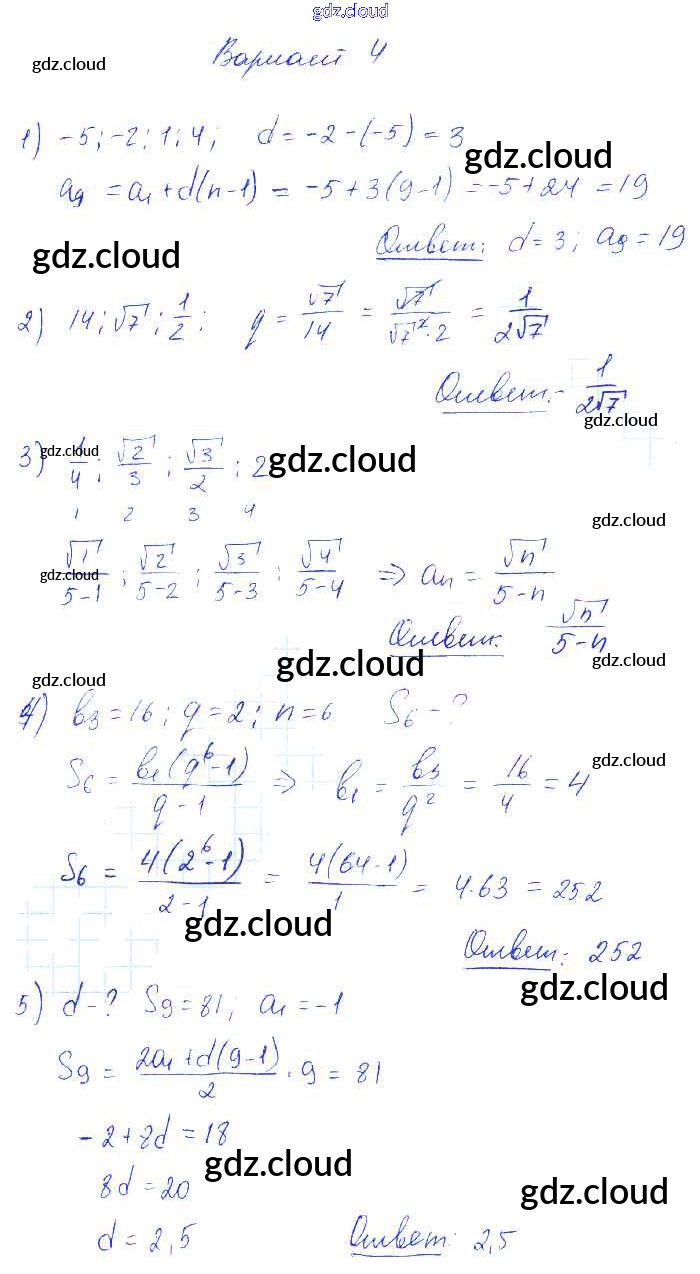 КР-4. Прогрессии Ответы к Контрольным работам по Алгебре 9 класс Контрольные и самостоятельные работы Попов УМК Экзамен