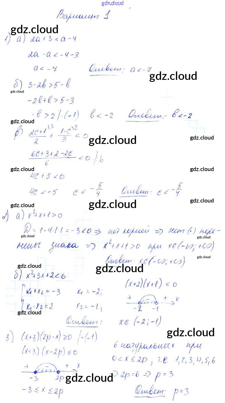 СР-1. Линейные и квадратные неравенства Ответы к Самостоятельным работам по Алгебре 9 класс Контрольные и самостоятельные работы Попов УМК Экзамен