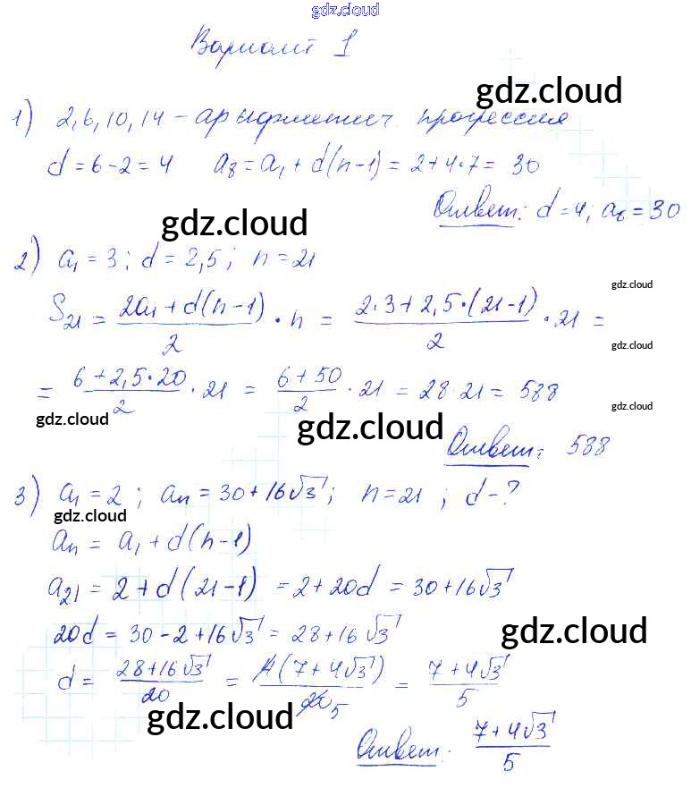 СР-17. Арифметическая прогрессия Ответы к Самостоятельным работам по Алгебре 9 класс Контрольные и самостоятельные работы Попов УМК Экзамен