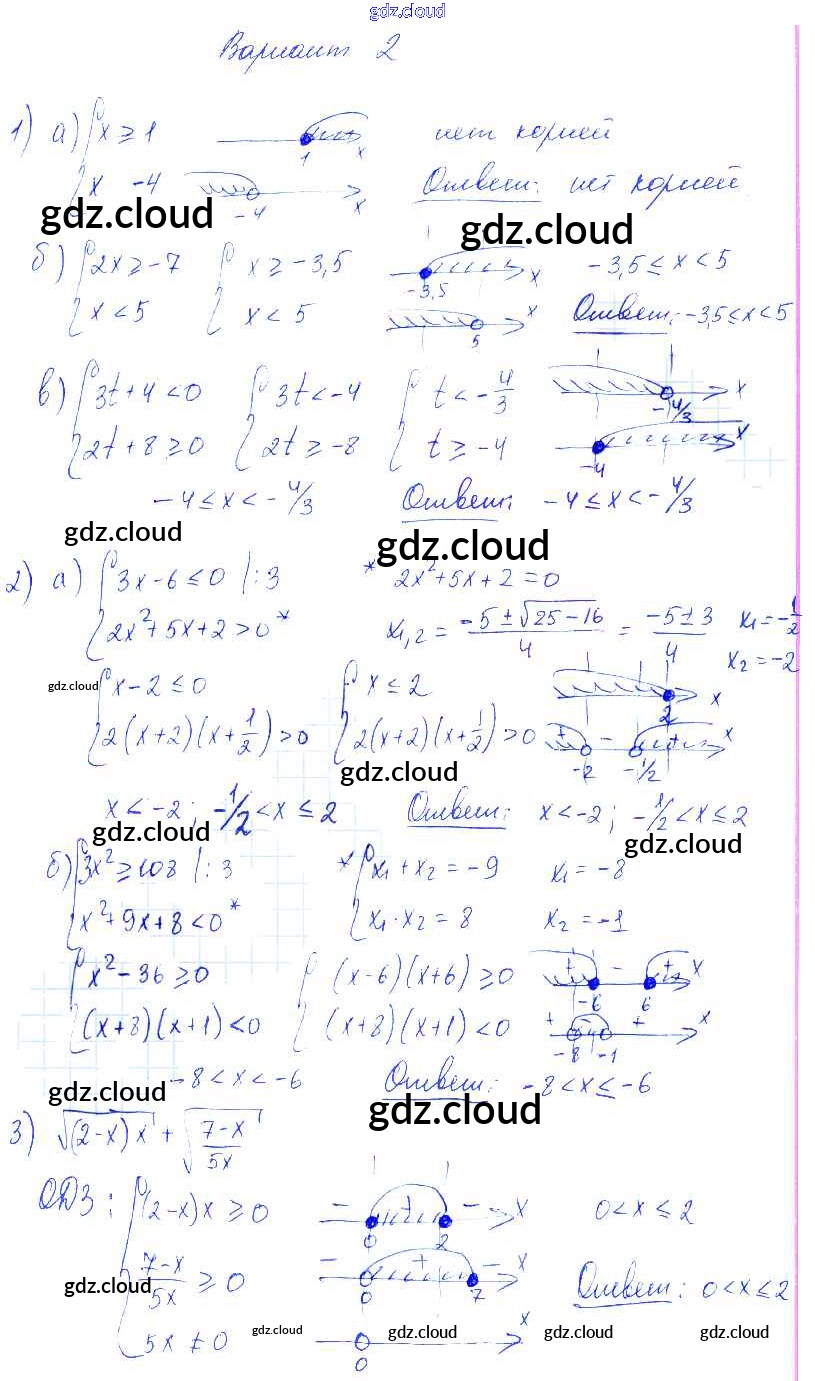 Ответ на задание Вариант 2 Контрольные и самостоятельные работы Алгебра за 9 (девятый) класс Попов УМК 2011