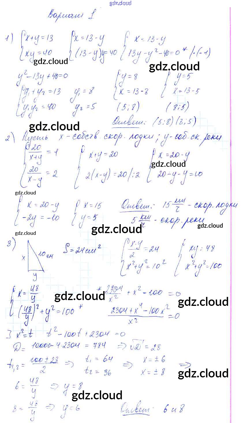СР-8. Системы уравнений как математические модели реальных ситуаций Ответы к Самостоятельным работам по Алгебре 9 класс Контрольные и самостоятельные работы Попов УМК Экзамен