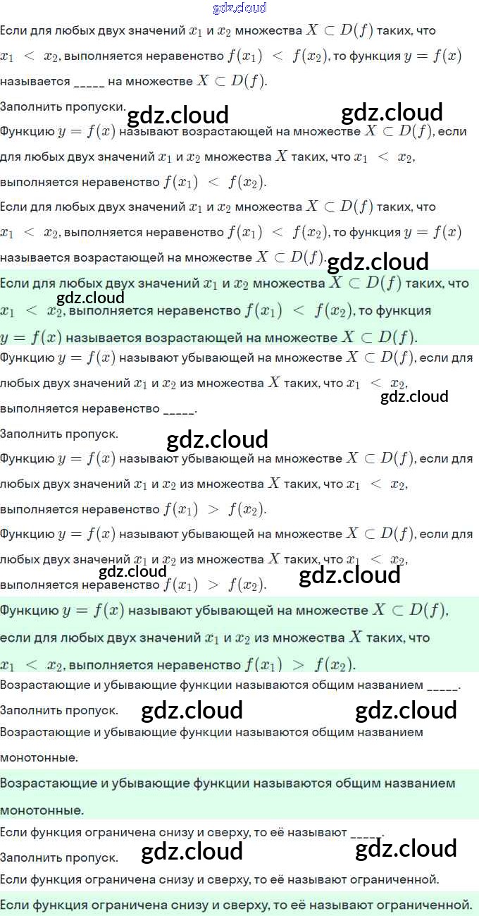 Ответы. §10. Свойства функций по Алгебре 9 класс Рабочая тетрадь Ключникова УМК Экзамен
