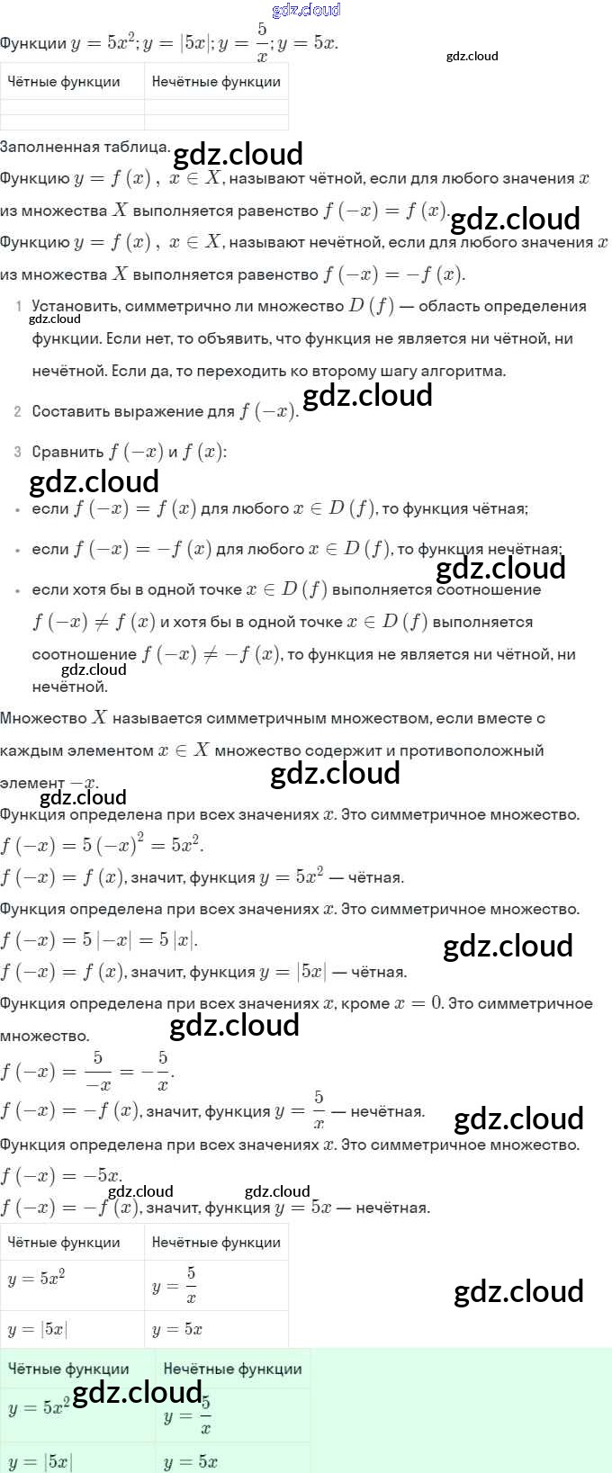 Ответы. §11. Чётные и нечётные функции по Алгебре 9 класс Рабочая тетрадь Ключникова УМК Экзамен