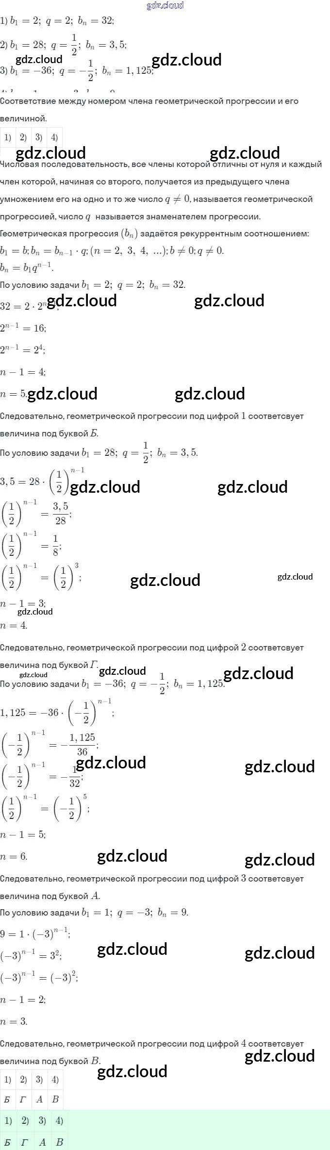 Ответы. §17. Геометрическая прогрессия по Алгебре 9 класс Рабочая тетрадь Ключникова УМК Экзамен