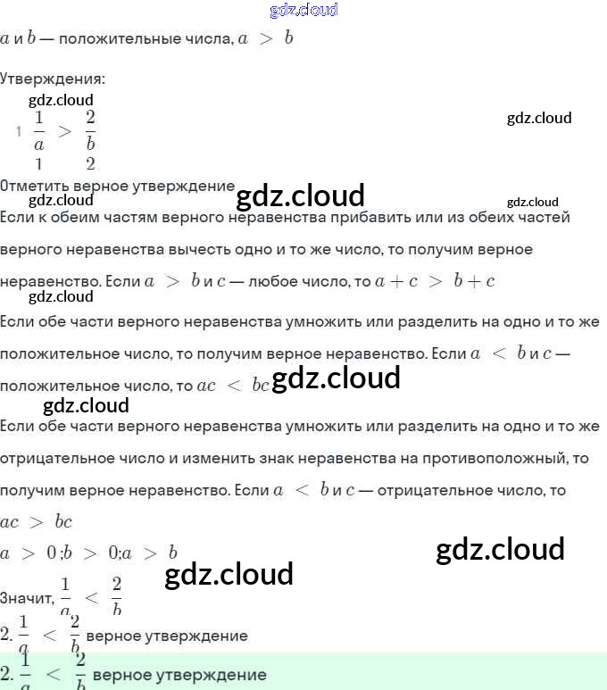 Ответы. §2. Основные свойства числовых неравенств по Алгебре 9 класс Рабочая тетрадь Мерзляк Часть 1, 2 Вентана-граф