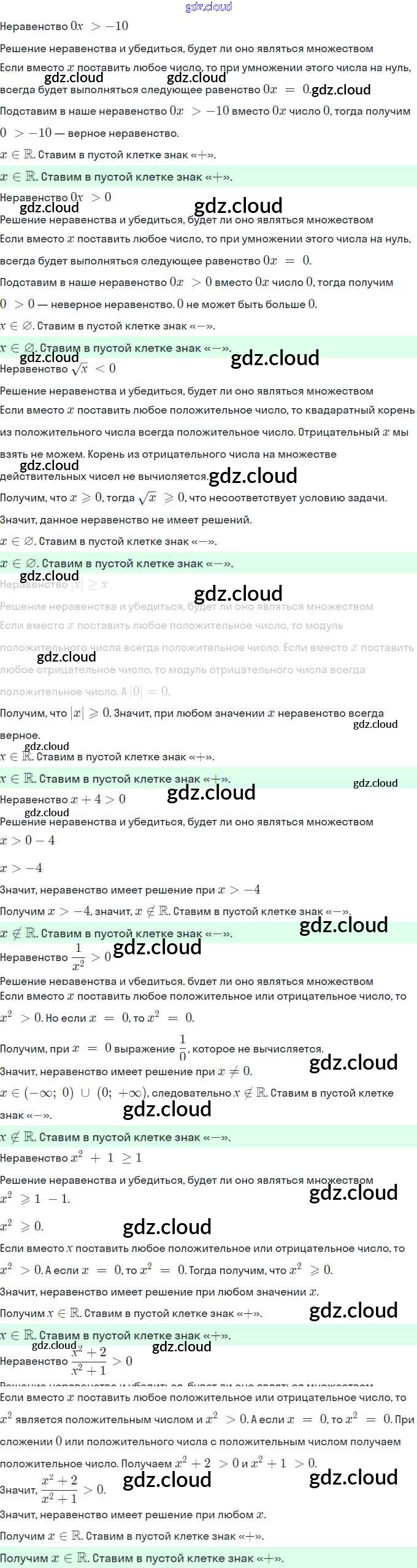 Ответы. §4. Неравенства с одной переменной по Алгебре 9 класс Рабочая тетрадь Мерзляк Часть 1, 2 Вентана-граф