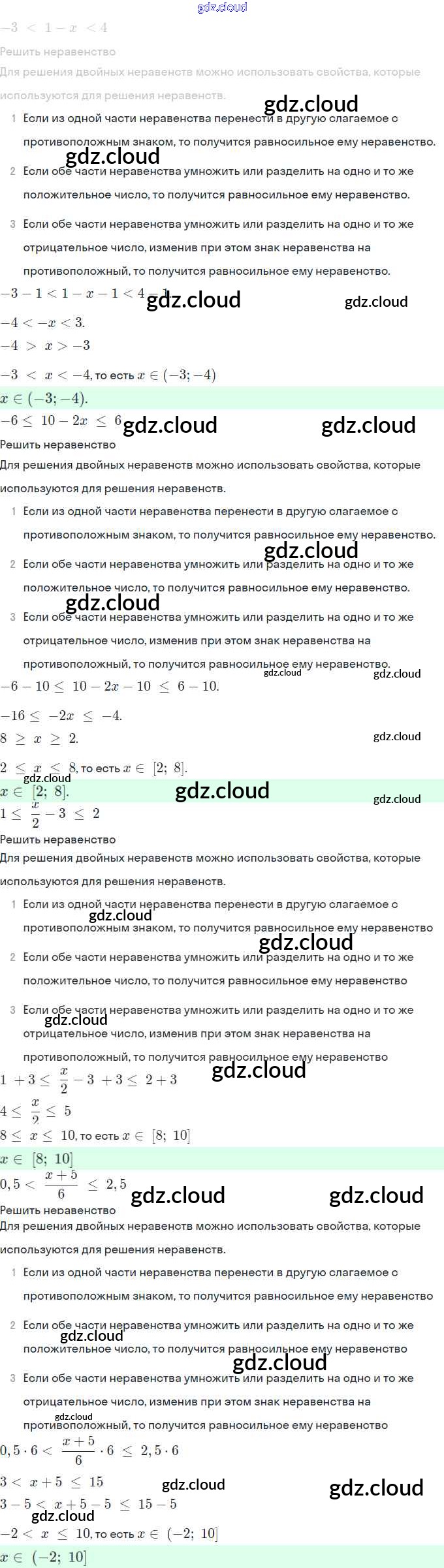 Ответы. §6. Системы линейных неравенств с одной переменной по Алгебре 9 класс Рабочая тетрадь Мерзляк Часть 1, 2 Вентана-граф