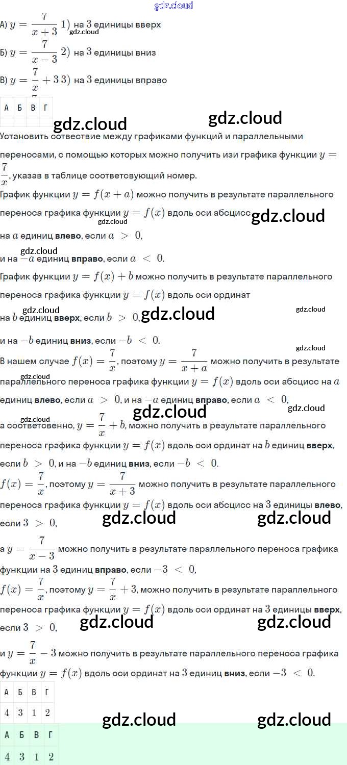 Ответы. §10. Построение графиков функций y=f(x)+b и y=f(x+a) по Алгебре 9 класс Рабочая тетрадь Мерзляк Часть 1, 2 Вентана-граф